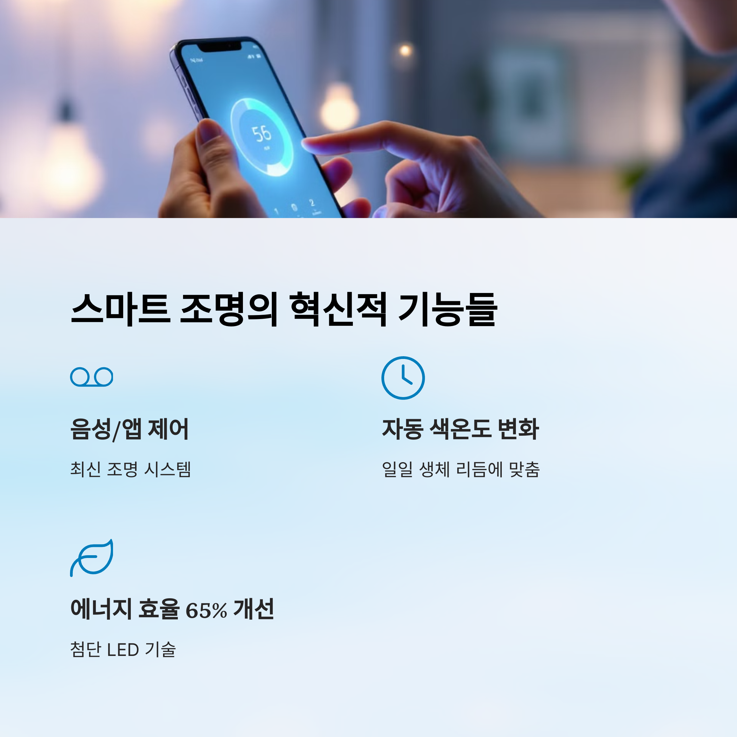 스마트 조명이라고 해서 단순히 색깔만 바뀌는 건 아니에요! 다양한 기능이 들어가 있어서 ‘편리함’과 ‘감성’을 동시에 챙길 수 있답니다. 요즘은 손 하나 까딱 안 해도 빛으로 공간을 스타일링할 수 있어요. ✨