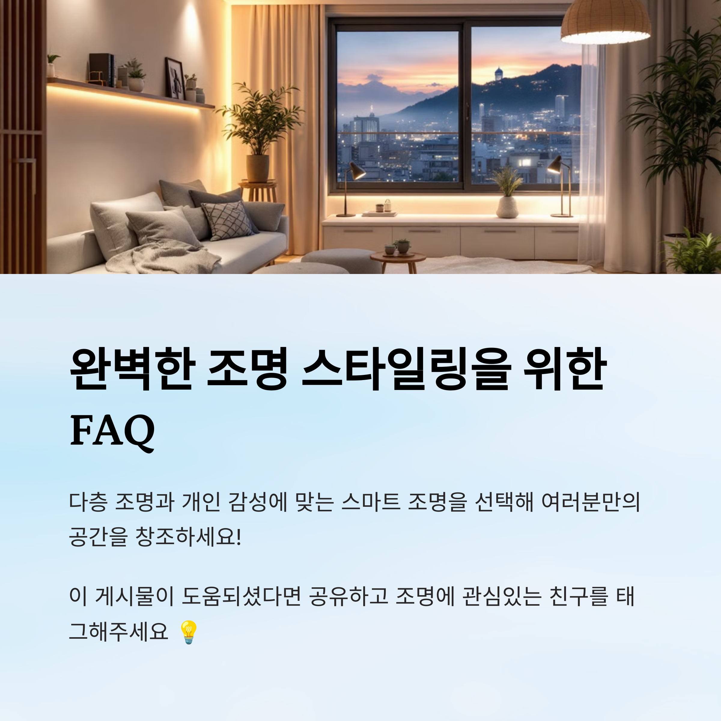 조명은 이제 단순히 공간을 밝히는 도구가 아니에요. 나만의 감성을 표현하고, 스마트하게 삶을 더 편리하게 만들어주는 ‘빛의 인테리어’로 진화했죠. 🌟