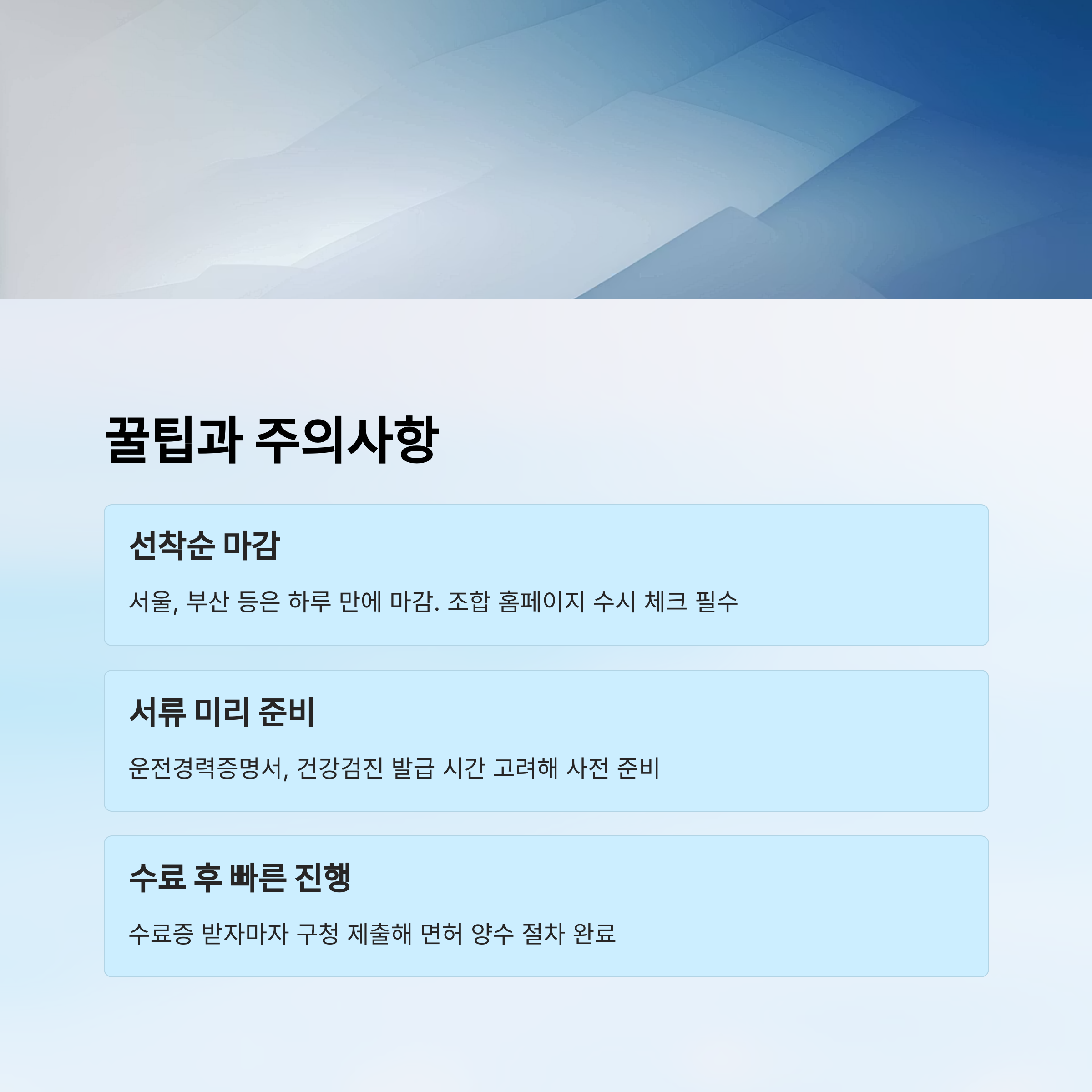 | 서류 사전 준비 | 운전경력증명서, 건강검진 미리 발급 |