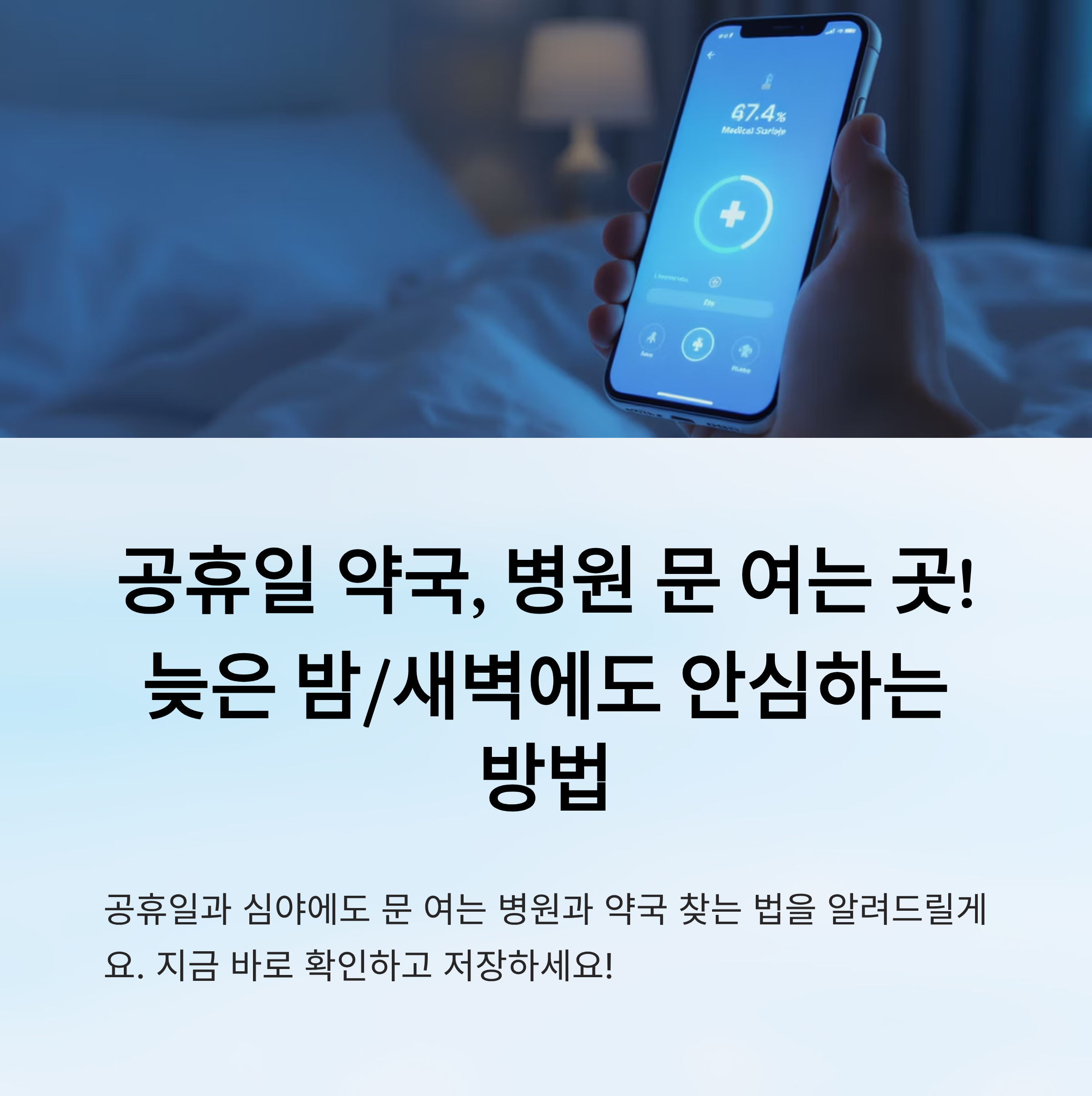 갑작스럽게 아이가 열이 나거나, 본인이 식중독 증세를 보이는 날이 꼭 공휴일이나 주말, 심지어 한밤중일 때가 있어요. 이런 상황에서 문 닫은 병원과 약국을 보며 막막함을 느끼는 분들이 많죠.