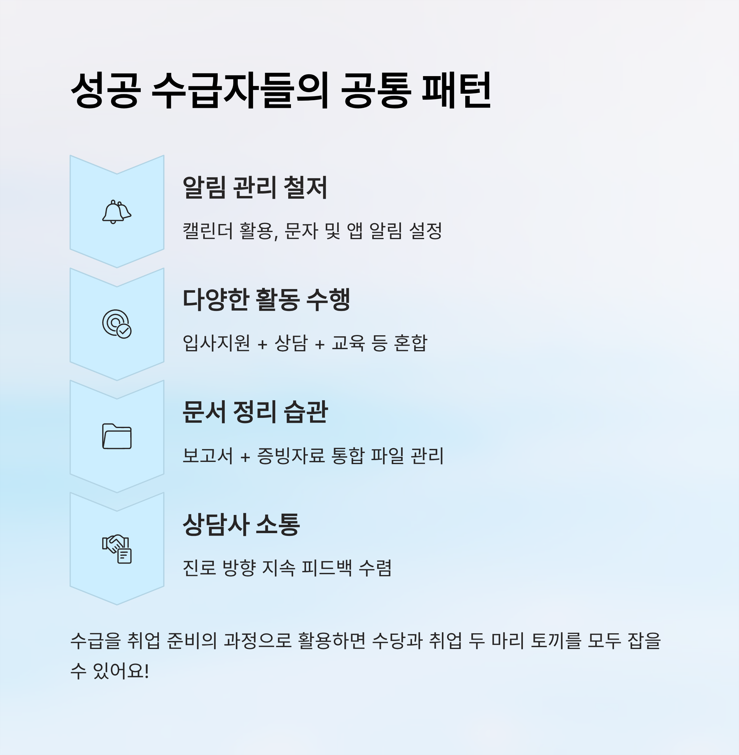 수급 성공자들의 특징은 단순히 ‘수당 받는 것’에 집중하지 않고, 그것을 ‘취업 준비의 과정’으로 활용했다는 점이에요. 조금만 더 전략적으로 접근하면, 수급과 취업 두 마리 토끼를 모두 잡을 수 있어요! 🐰💼
