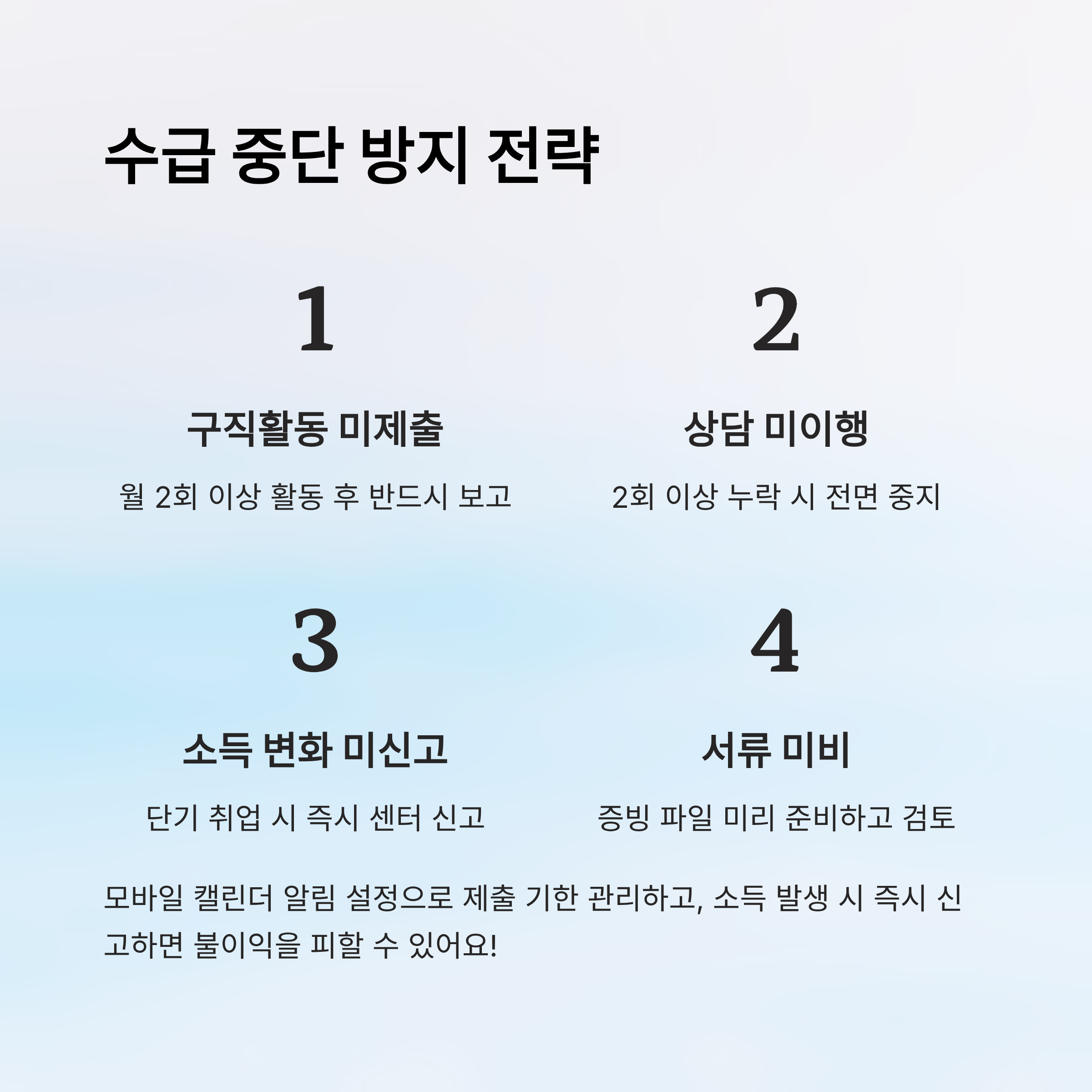 ⚠️ 수급 중단 주요 사유 및 예방법