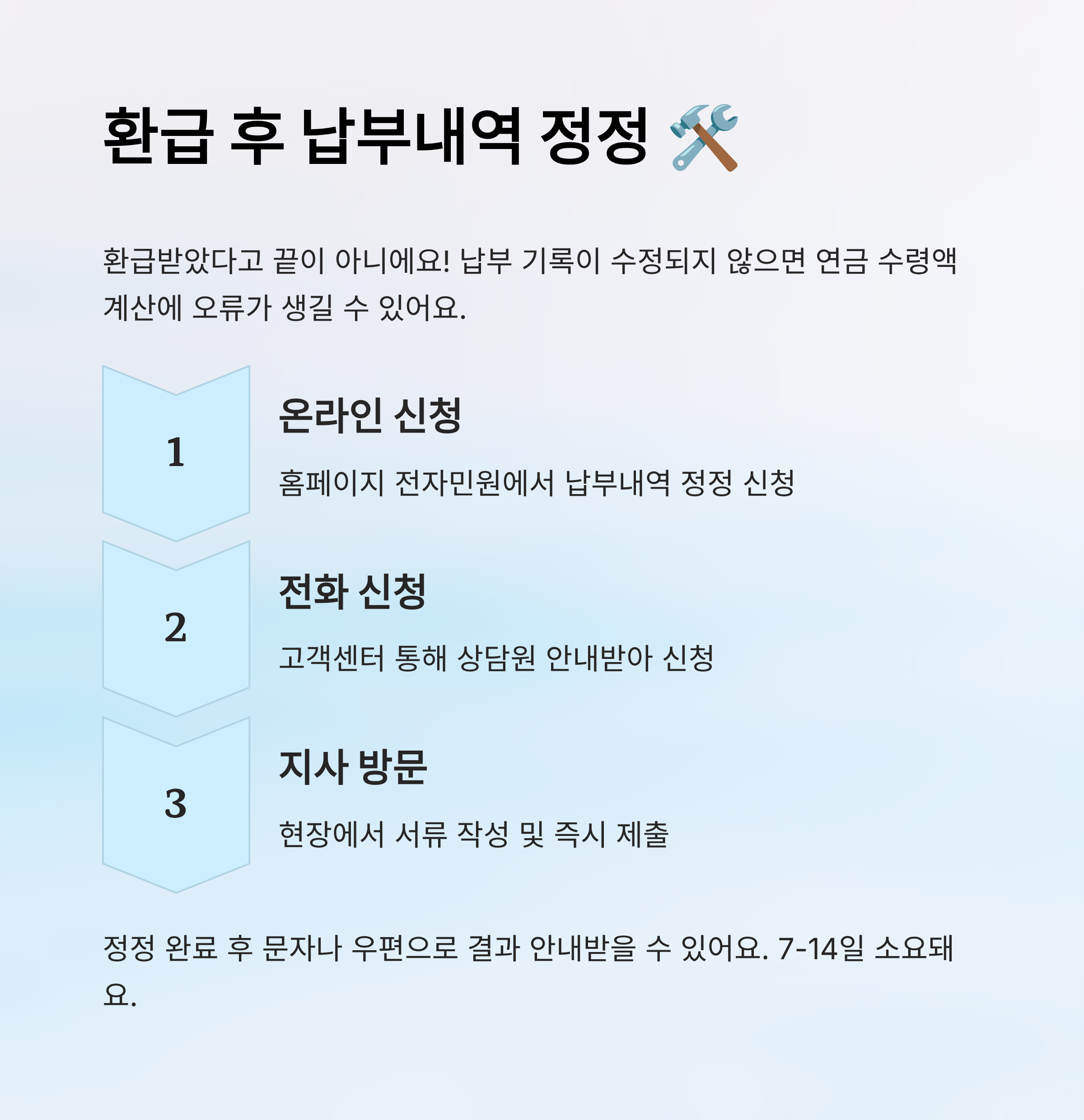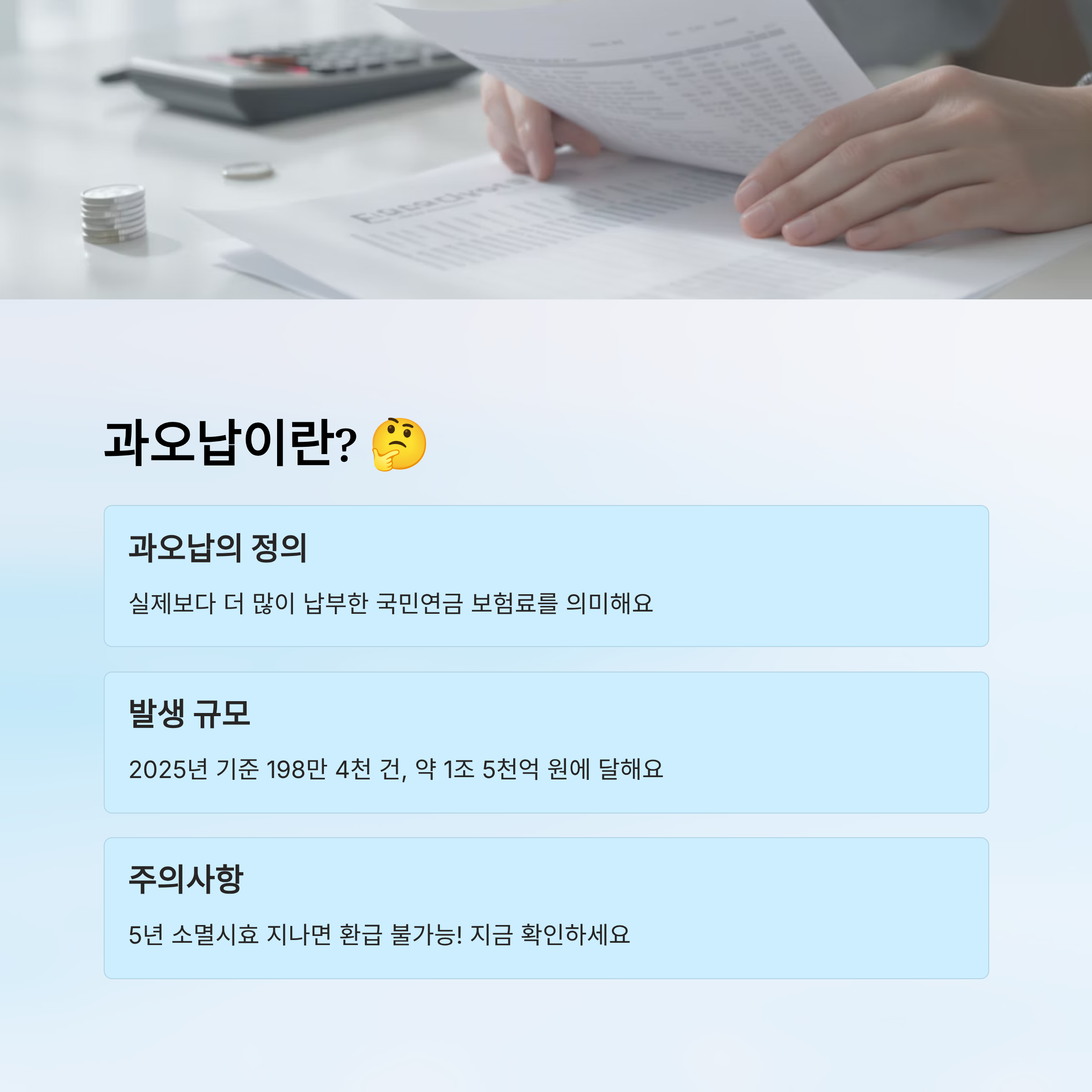 내가 생각했을 때 이런 건 정말 국민에게 적극적으로 알려야 할 정보예요. 이 글에서는 국민연금 과오납의 의미부터 환급 신청 방법, 환급 후 정정 절차까지 전부 다뤄볼게요. 놓친 내 돈, 클릭 한 번으로 꼭 되찾아가요! 🧾💸