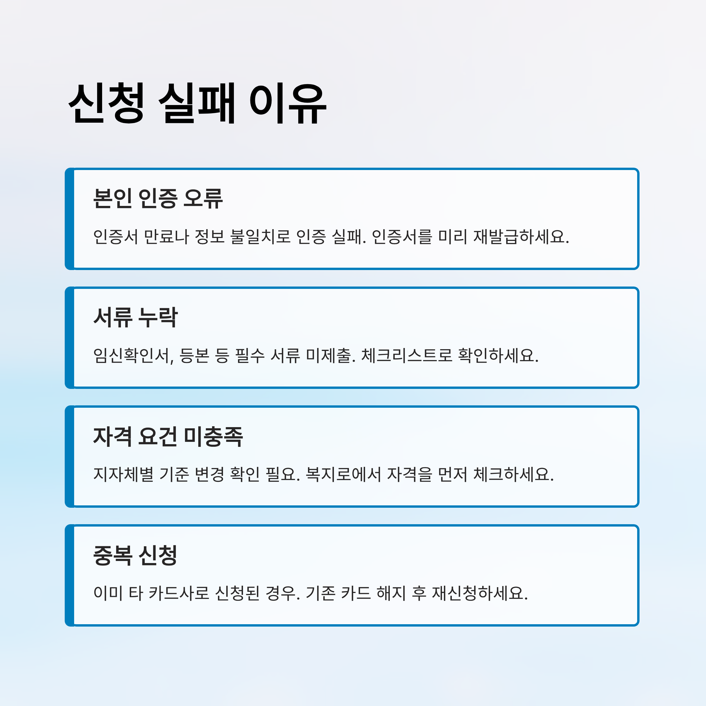 | 서류 누락 | 출산예정일 증빙 서류 미제출 | 신청 전 서류 체크리스트 확인 |