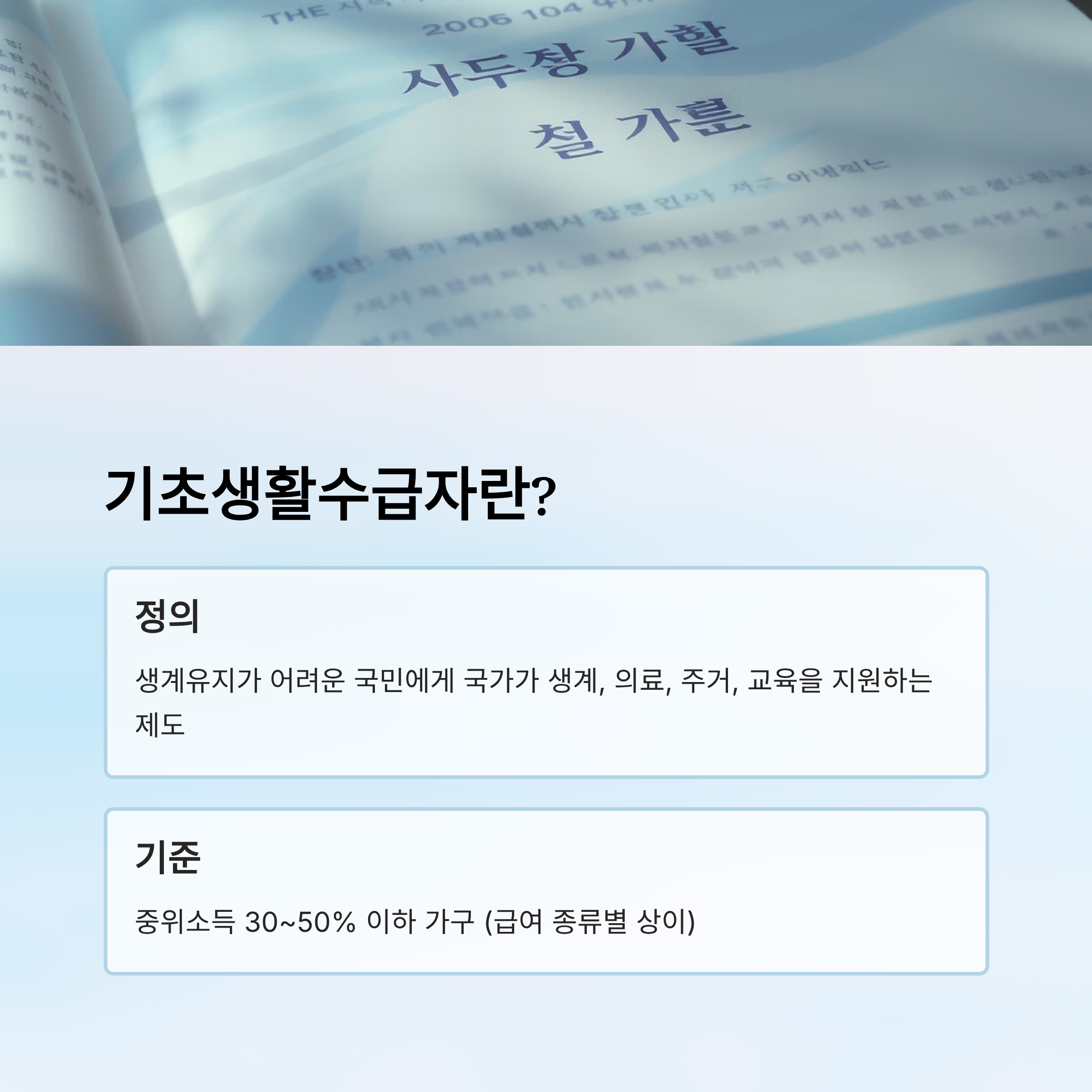 기초생활수급자는 생계유지가 어려운 국민에게 국가가 직접적으로 생계, 의료, 주거, 교육을 지원해 주는 제도에 따라 선정된 대상자예요. 2000년에 처음으로 '국민기초생활보장법'이 시행되면서 제도적 기틀이 마련되었고, 이후 여러 차례 개정을 거치며 지금의 복지 체계로 발전했답니다.