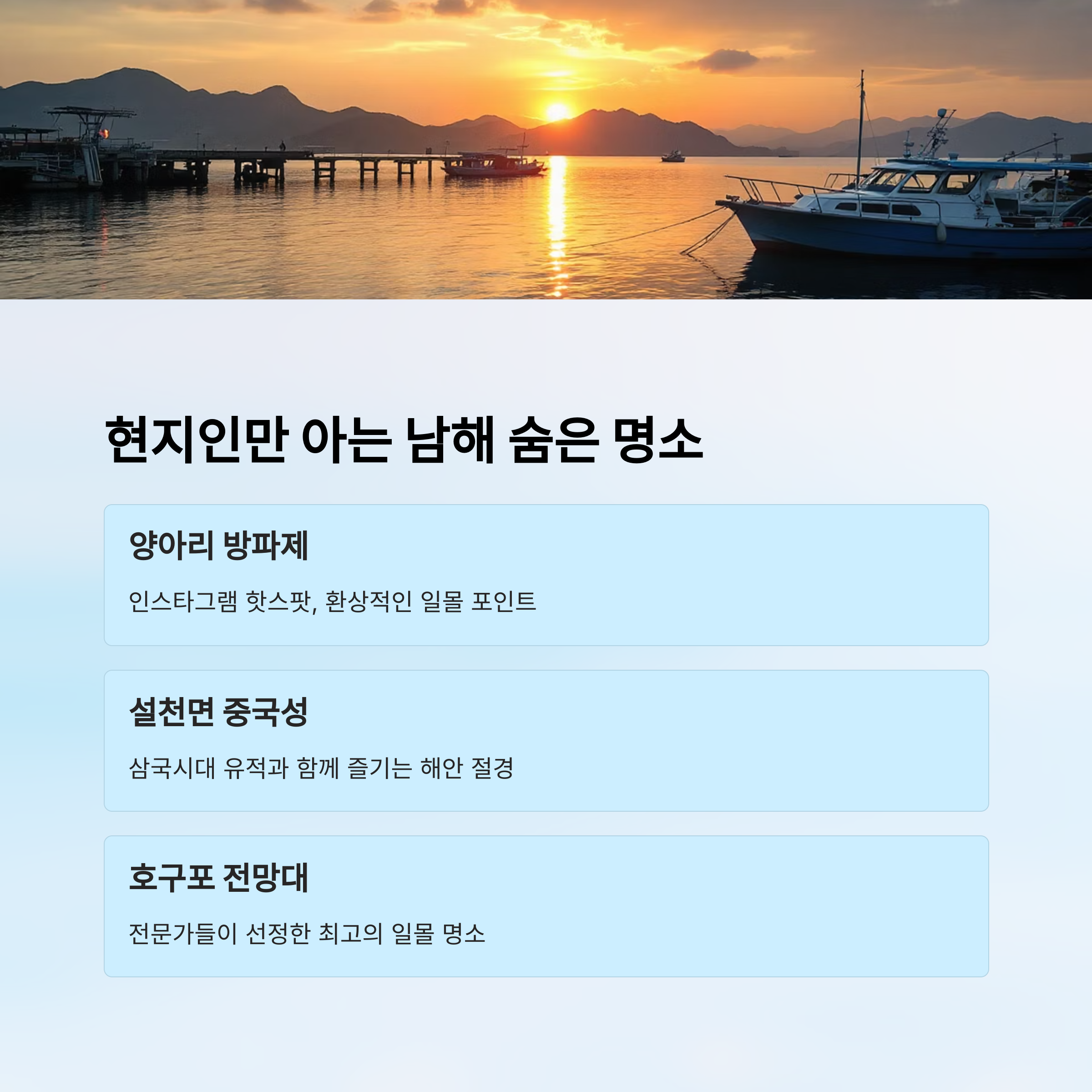 남해에는 유명한 곳 말고도 '진짜 보석' 같은 숨은 명소가 많아요. 조용히 자연을 느끼고 싶은 사람들에게 딱인 곳들이죠. 여기 몇 군데 소개할게요! ✨