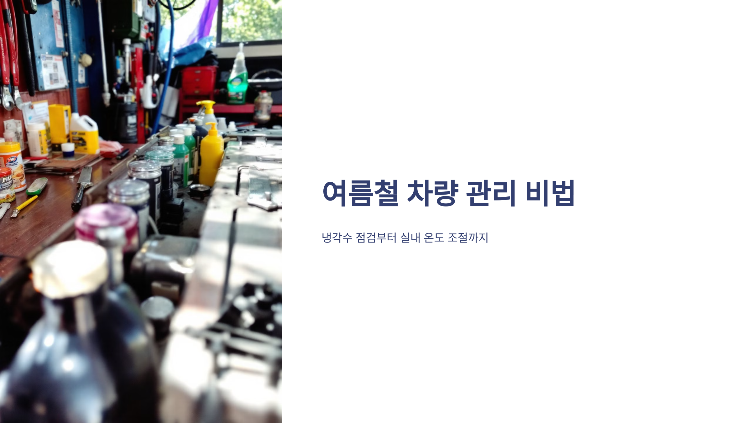 냉각수 점검은 여름철 엔진 과열을 예방하는 기본입니다.