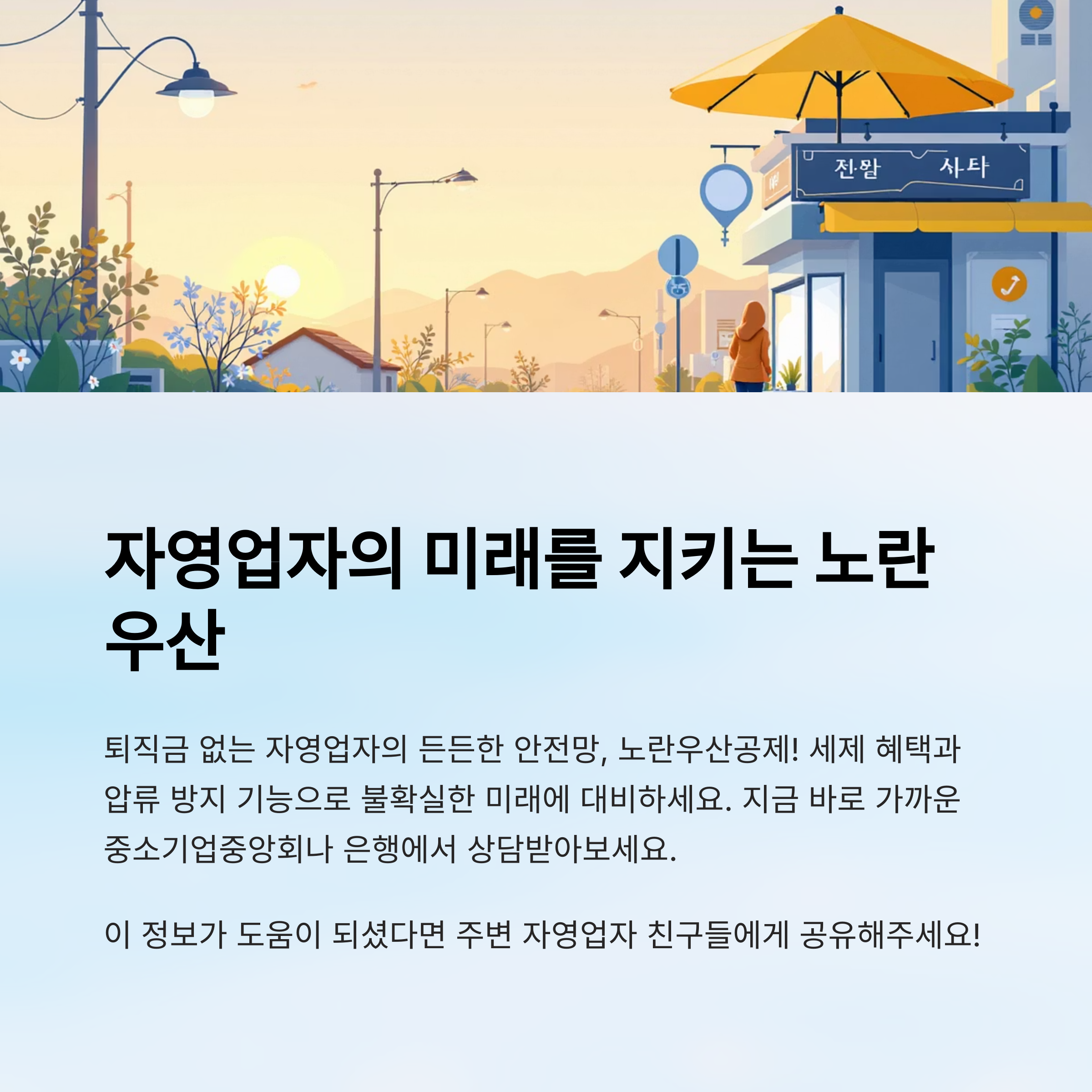 요즘처럼 경제 불확실성이 클 때, 자영업자들은 언제든 닥칠 수 있는 위험에 대비해 이런 안전장치를 마련하는 게 현명하다고 할 수 있어요.