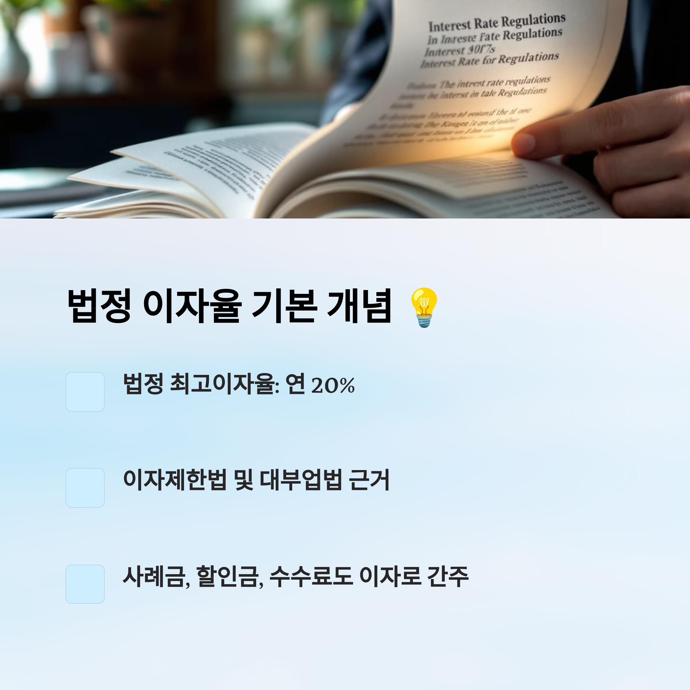 이럴 때 적용되는 기준이 바로 '법정 이자율'이에요. 민법과 상법, 대부업법 등에서 이자율의 한도를 규정하고 있어서 그 이상 받으면 불법이 되고, 무효 처리될 수도 있어요.