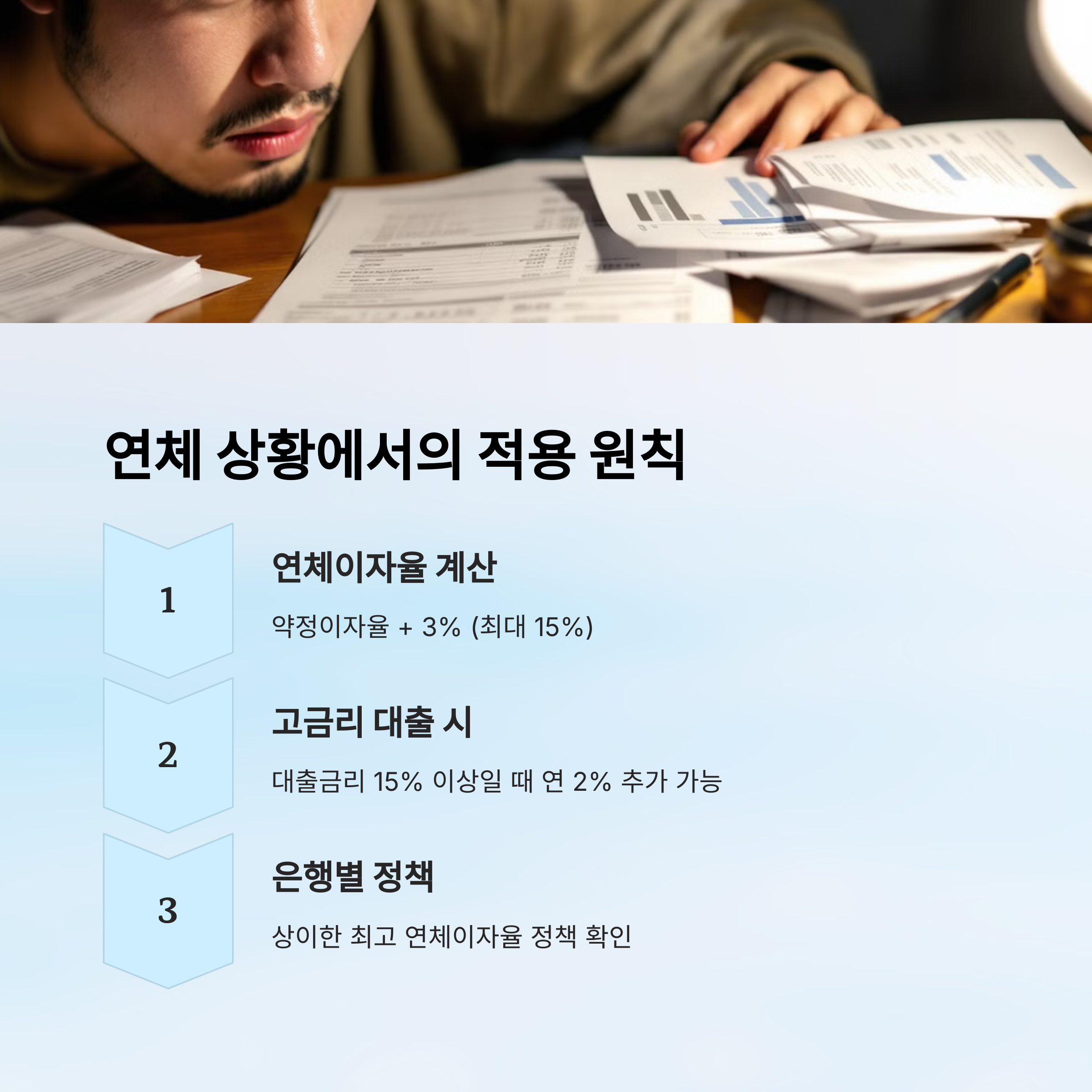 예전에는 연체이자가 24%를 넘기도 했지만, 최근엔 금융소비자 보호 강화를 위해 연체이자율 상한선도 강화됐어요. 금융위원회는 연체이자율을 '약정 이자율 + 3%' 이내로 제한하고 있어요.