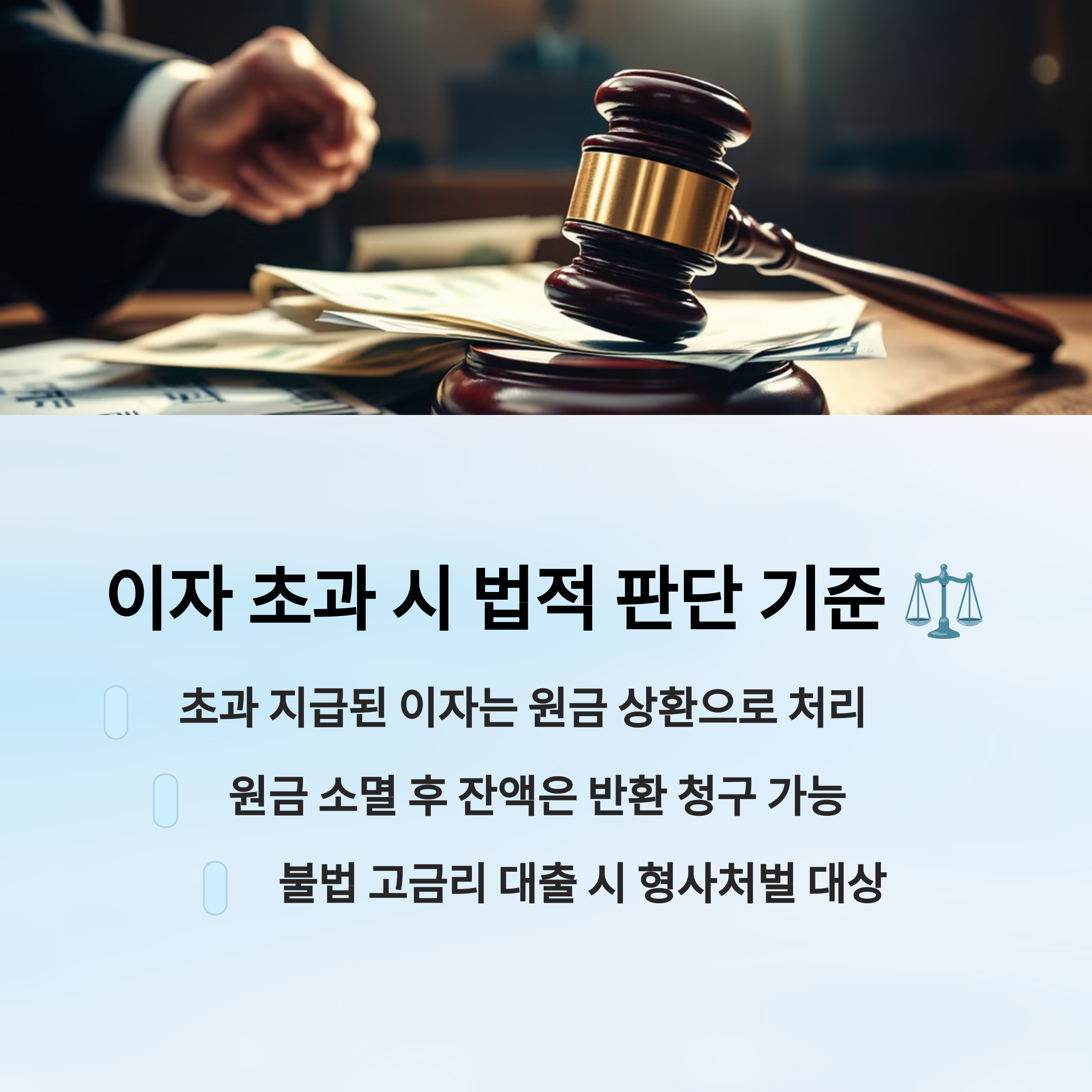 이자율이 법이 정한 한도를 초과했다면? 그 초과분은 무효예요. 민사상 부당이득 반환 청구가 가능하고, 형사상 이자제한법이나 대부업법 위반으로 처벌받을 수 있어요.