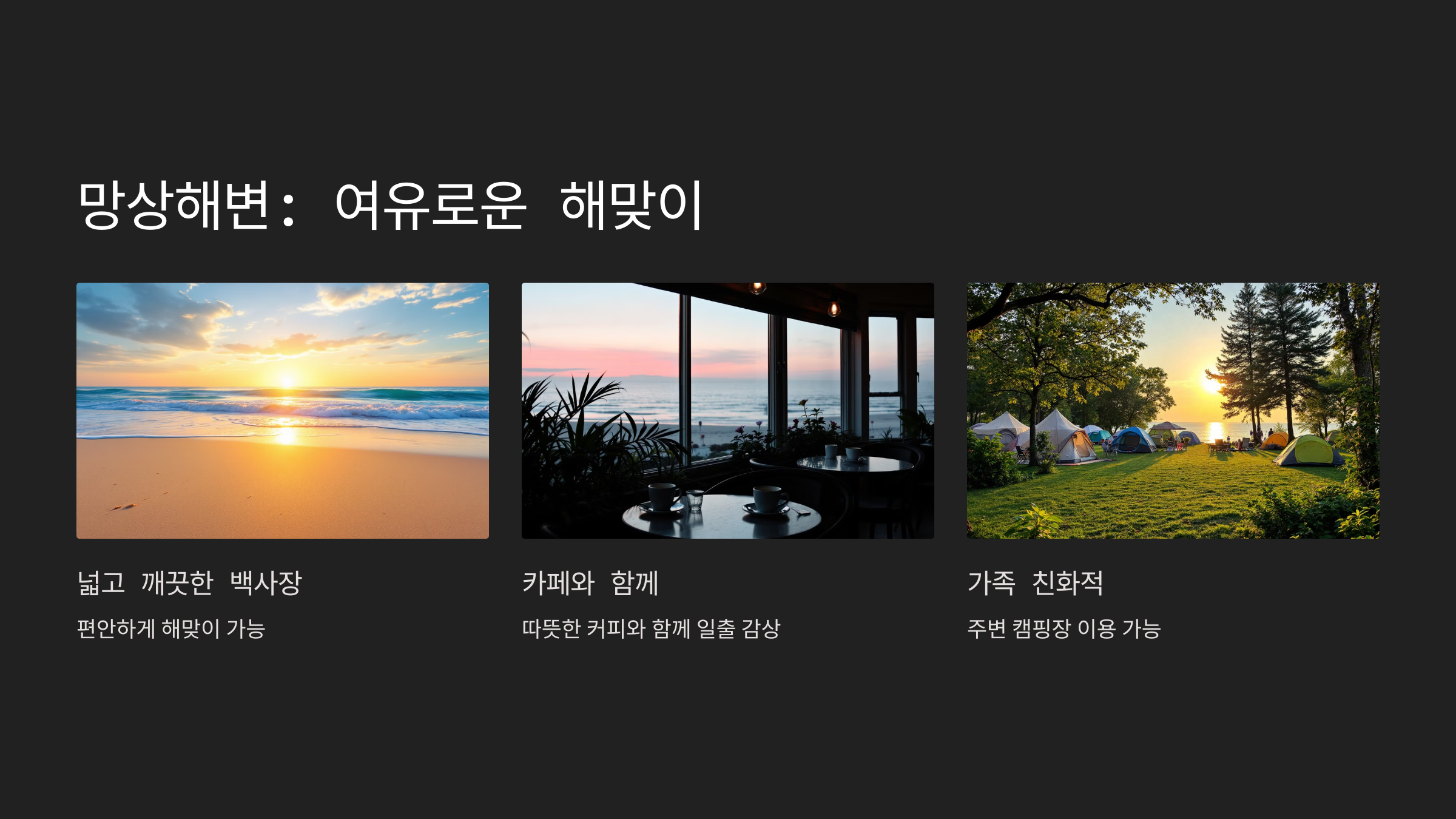 - 백사장에서 편안히 해맞이 가능