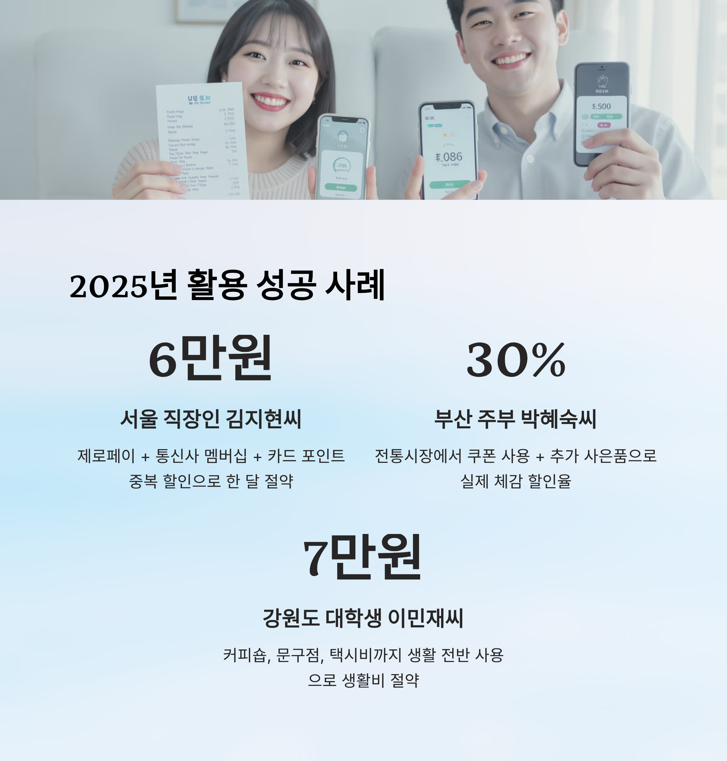 이제 실질적으로 이 쿠폰을 어떻게 활용해서 혜택을 누렸는지 사례를 볼까요? 서울에 사는 직장인 김지현 씨는 제로페이 연동 쿠폰을 매주 금요일마다 쓰며, 통신사 멤버십+카드 포인트 중복 할인까지 받아 한 달간 6만 원 이상을 절약했어요.