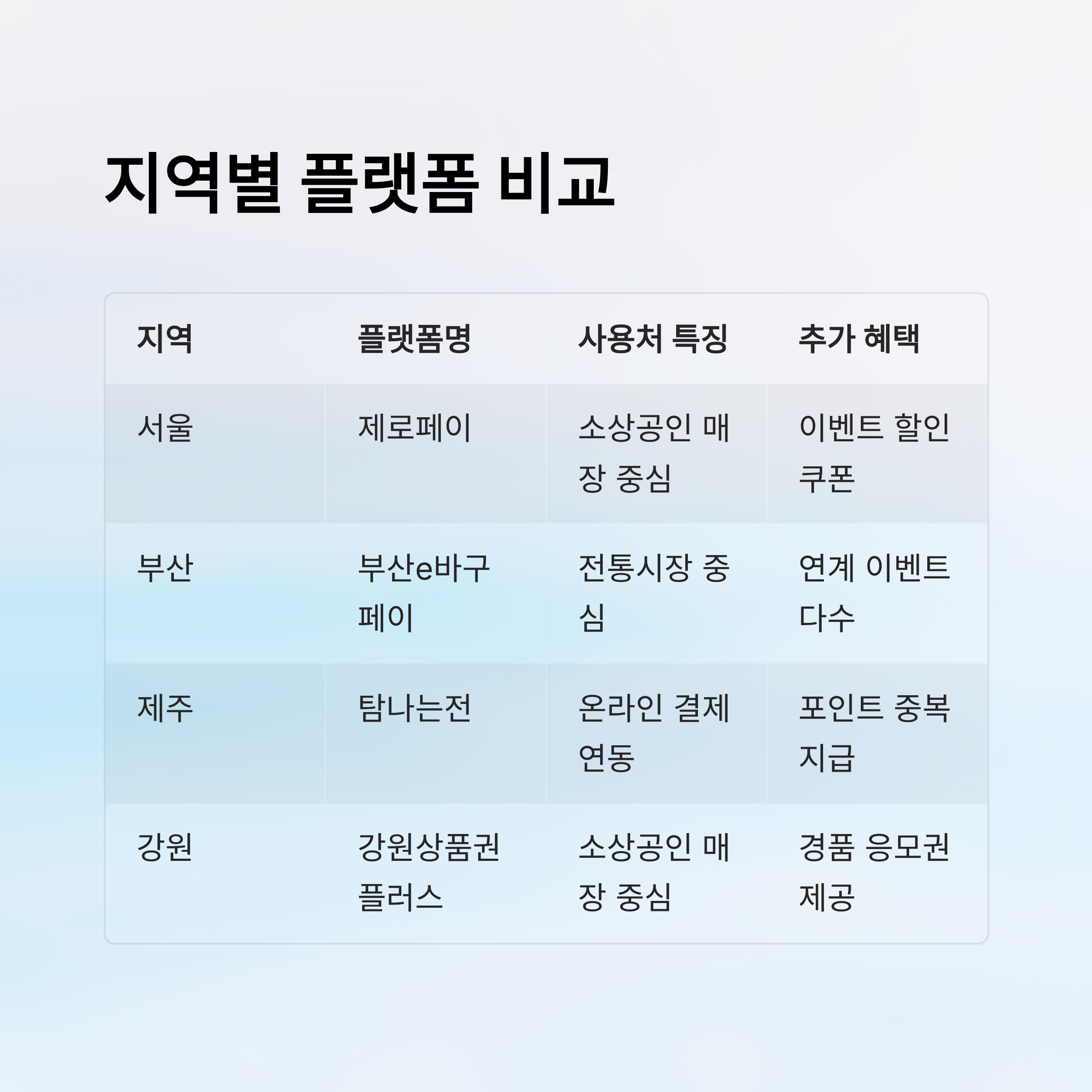 | 지역 | 플랫폼명 | 사용처 특징 | 추가 혜택 |