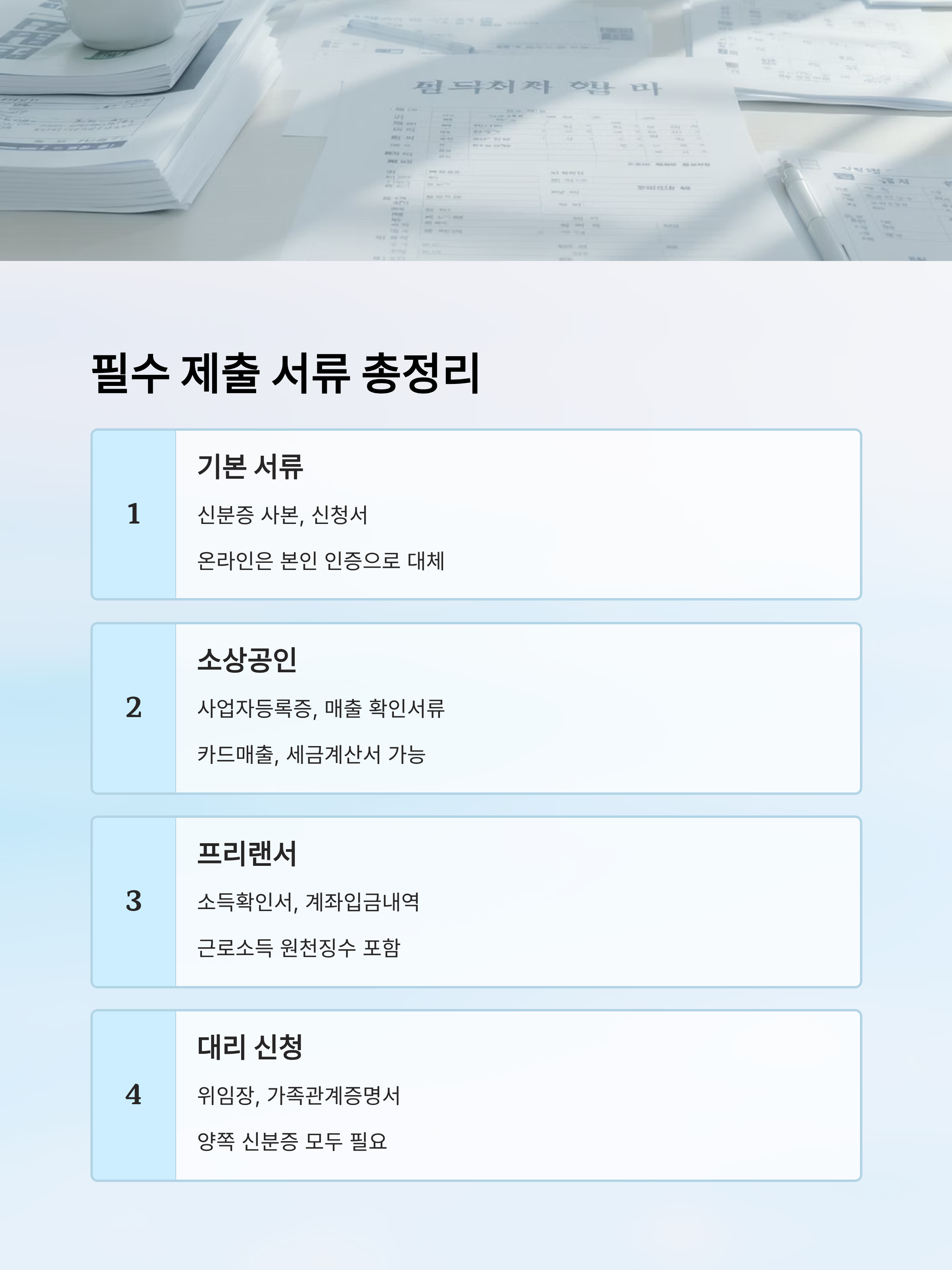 📊 신청 유형별 필수 서류 정리표