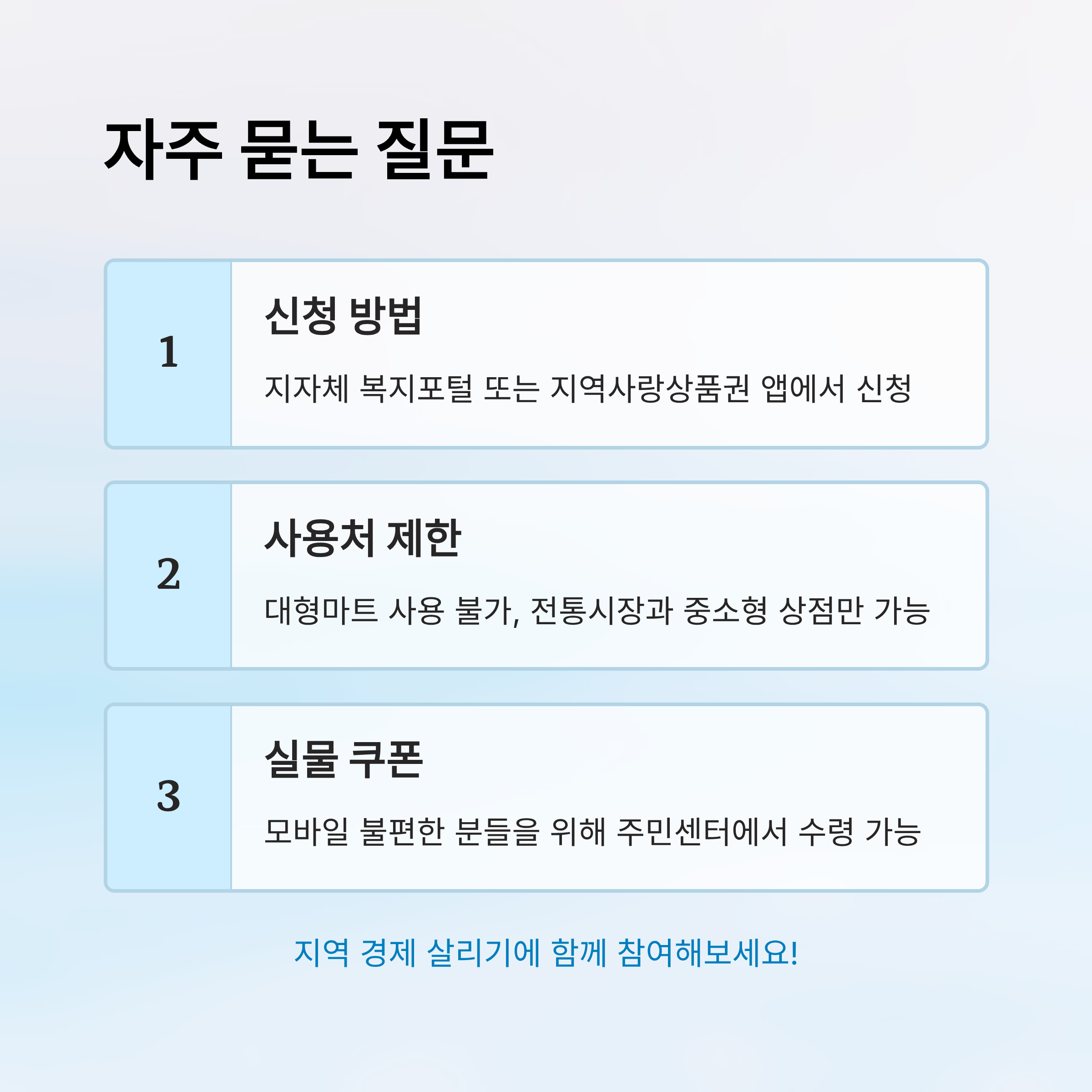 A1. 각 지자체의 복지포털이나 지역사랑상품권 앱에서 신청할 수 있어요. 온라인/오프라인 병행 접수예요.
