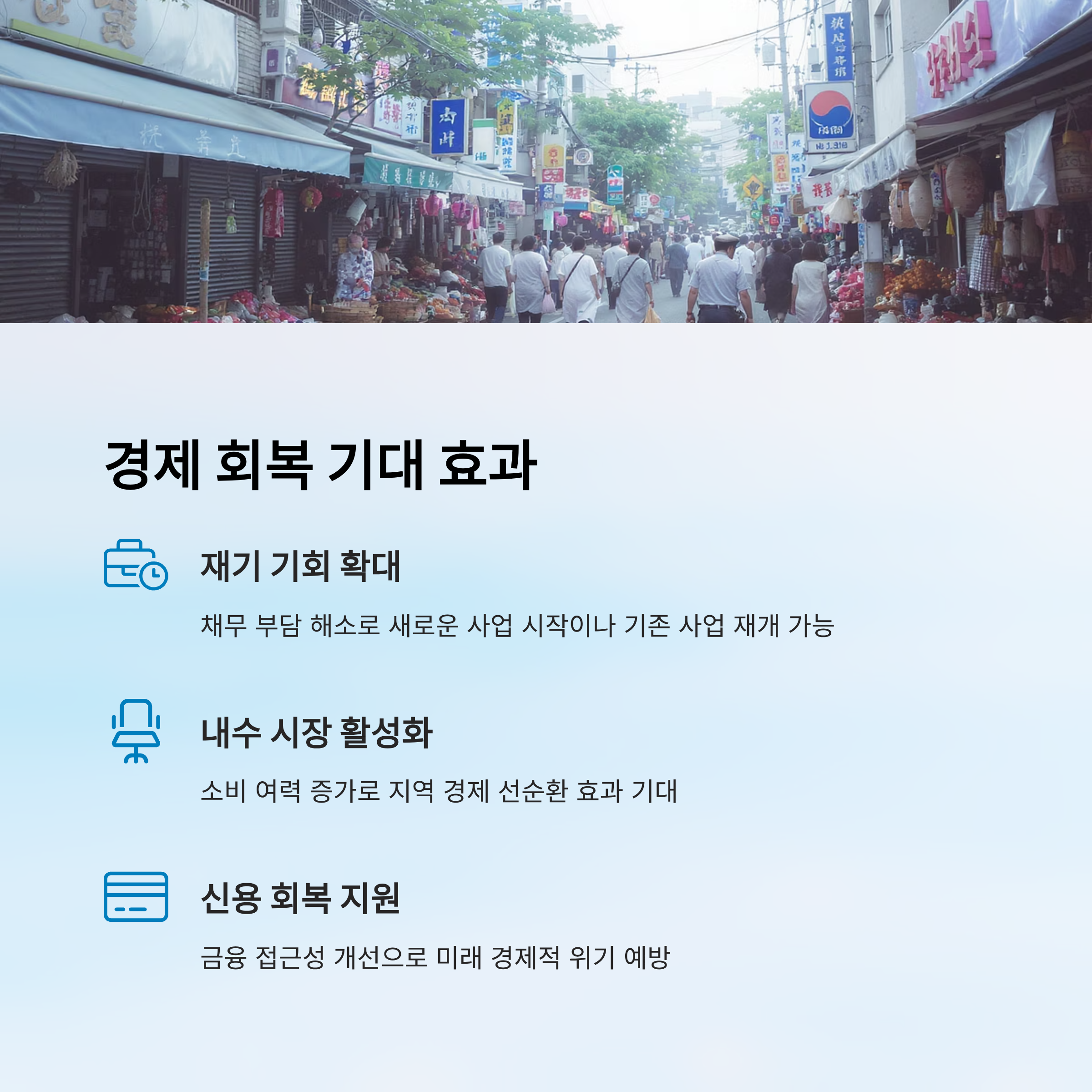 | 경제적 재기 | 채무 부담 경감으로 사업 재개 지원 | 성실 상환자 역차별 우려 |