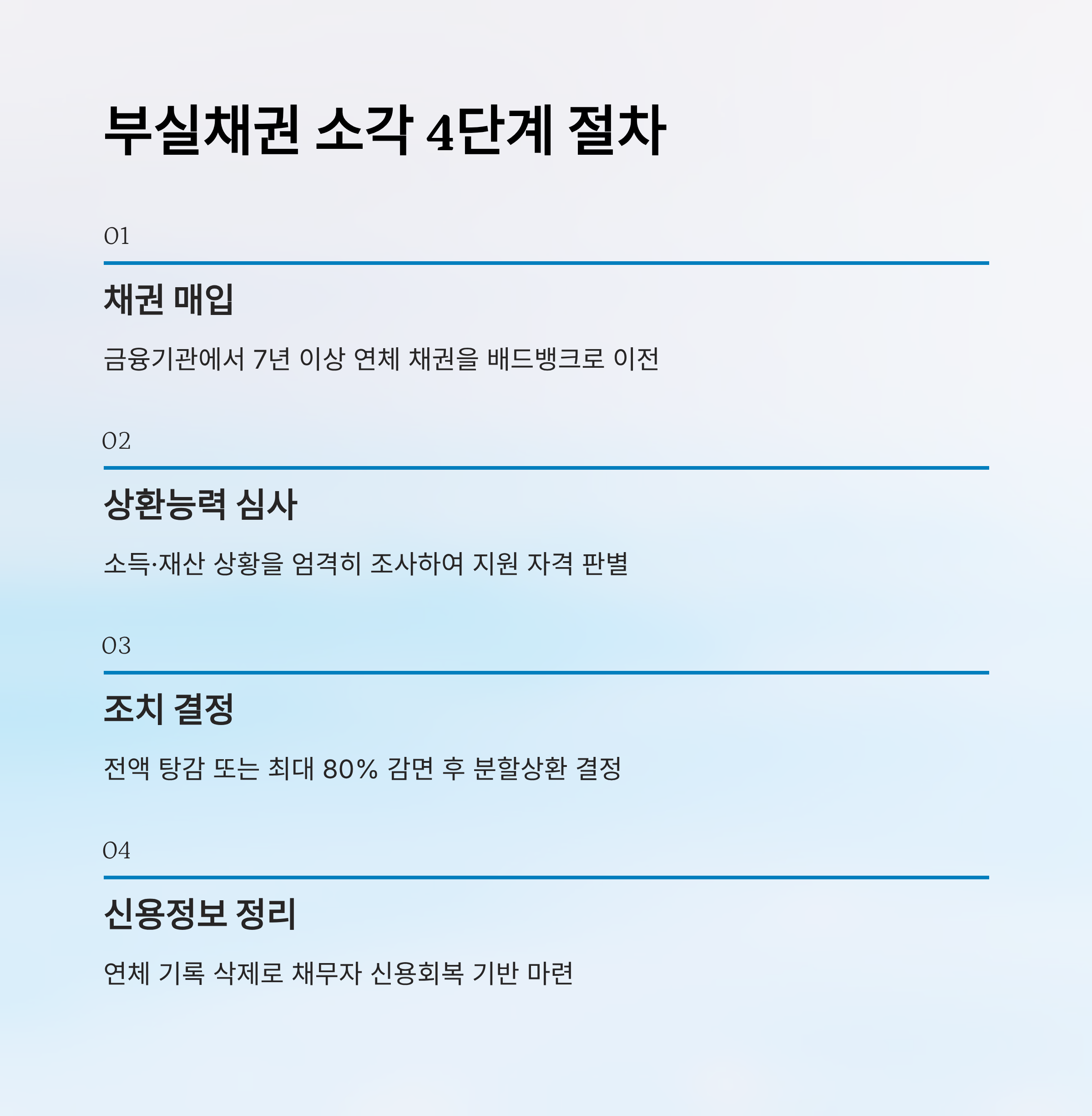 | 1. 채권 매입 | 금융기관 → 배드뱅크 | 7년 이상 연체 채권 |