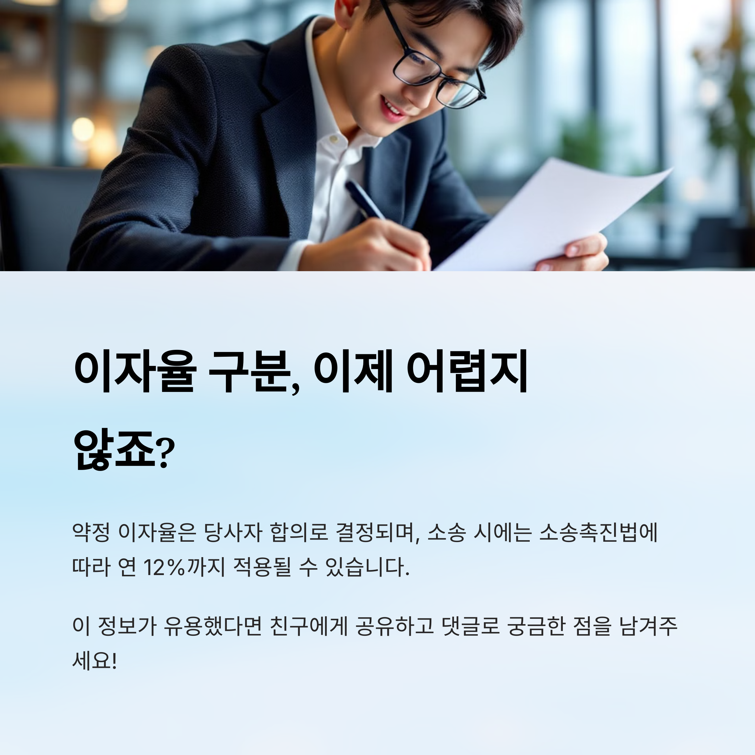 돈을 빌리고 갚을 때 '이자'가 따라오는 건 자연스러운 일이죠. 그런데 어떤 경우엔 "이자를 얼마나 줘야 하지?"라는 궁금증이 생길 수 있어요. 특히 따로 약속한 이율이 없다면, 법이 정해 놓은 '