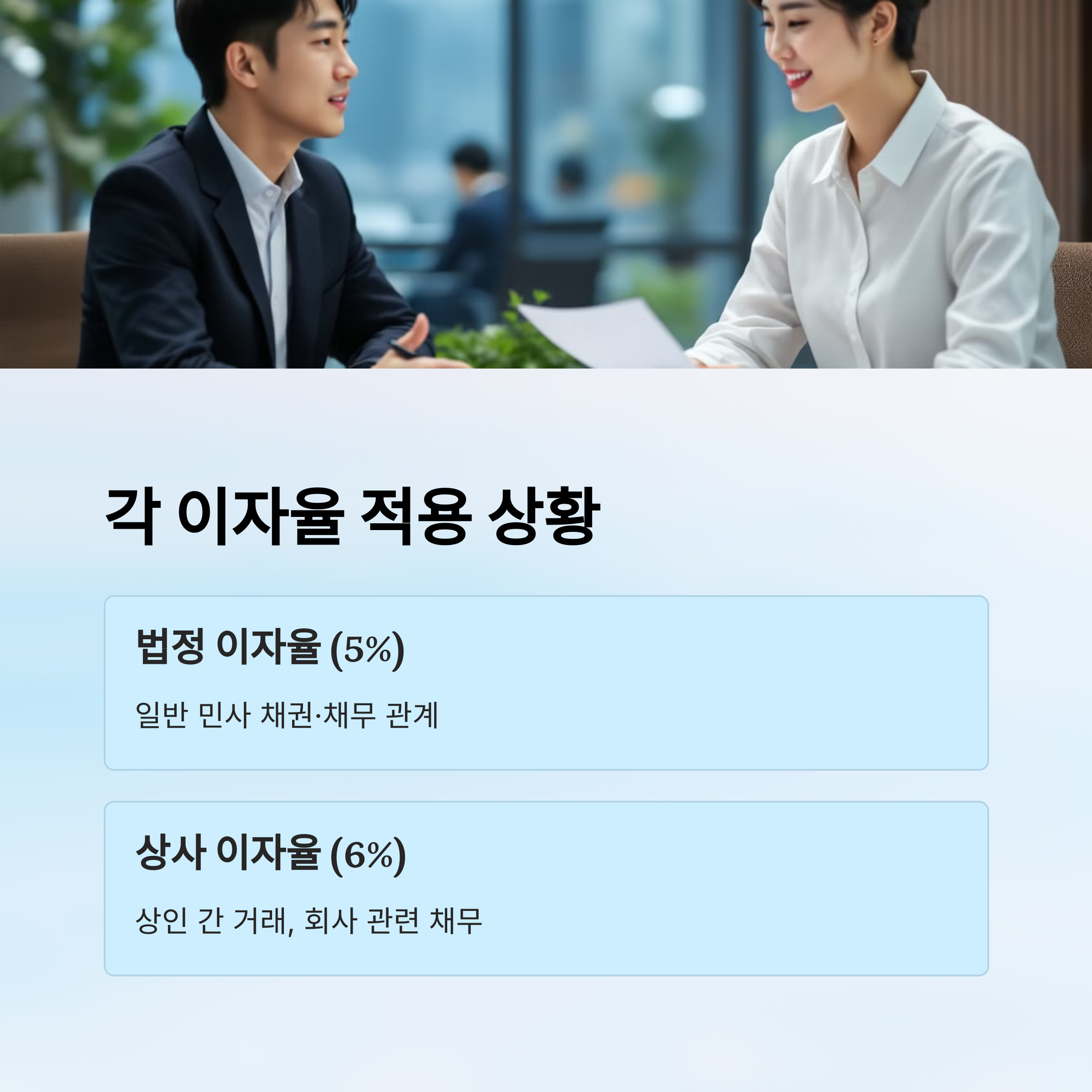 두 번째 차이는 ‘이자율 수치’예요. 2025년 기준 법정 이자율은 연 4%, 상사 이자율은 연 6%예요. 상사 거래는 회전율이 높고 신용 위험도 크기 때문에 조금 더 높은 이율이 인정돼요.
