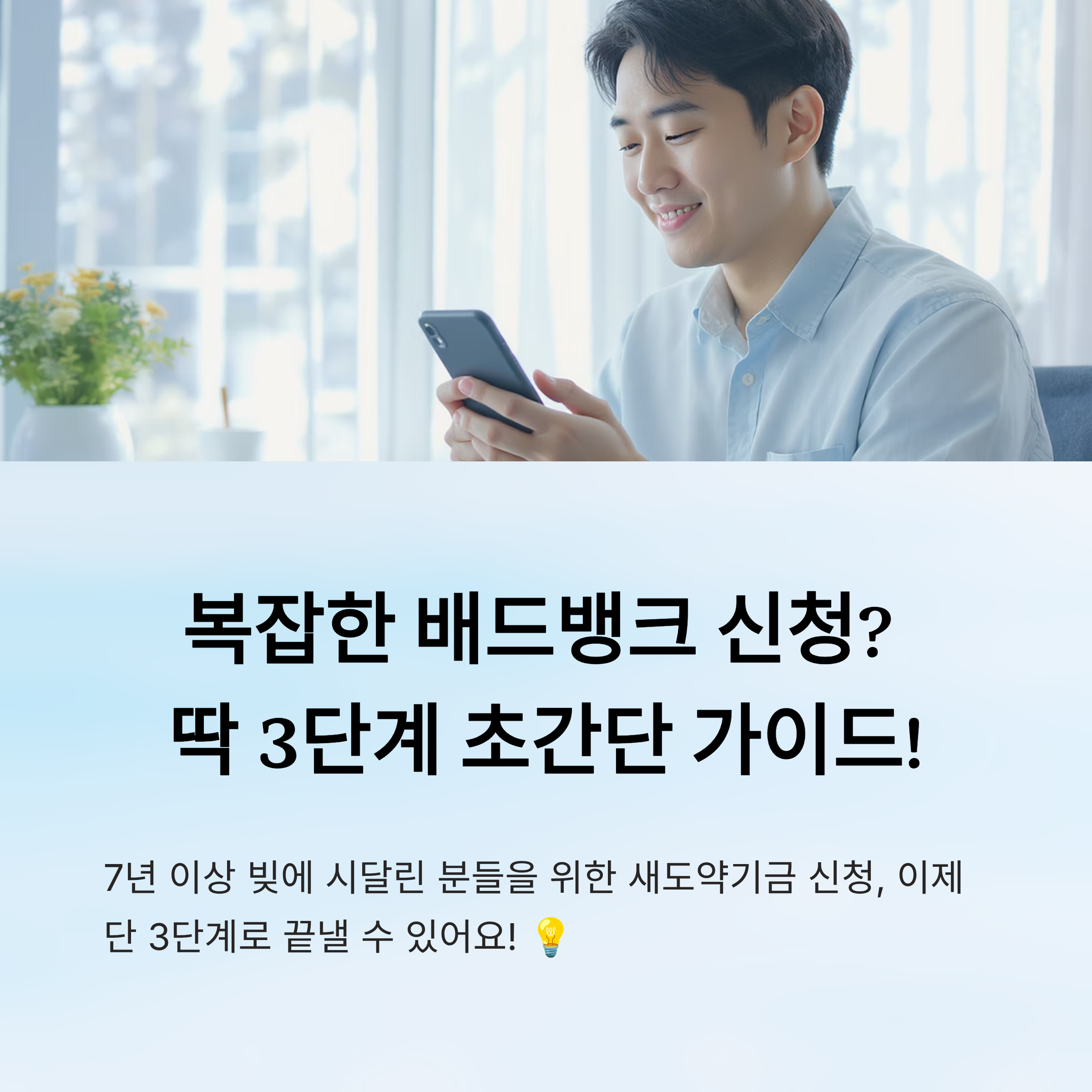 복잡하게 느껴졌던 배드뱅크 신청 절차, 이제는 단 3단계면 끝나요! 아래 순서대로 따라 하면 내 빚도 사라질 수 있어요. 🧾