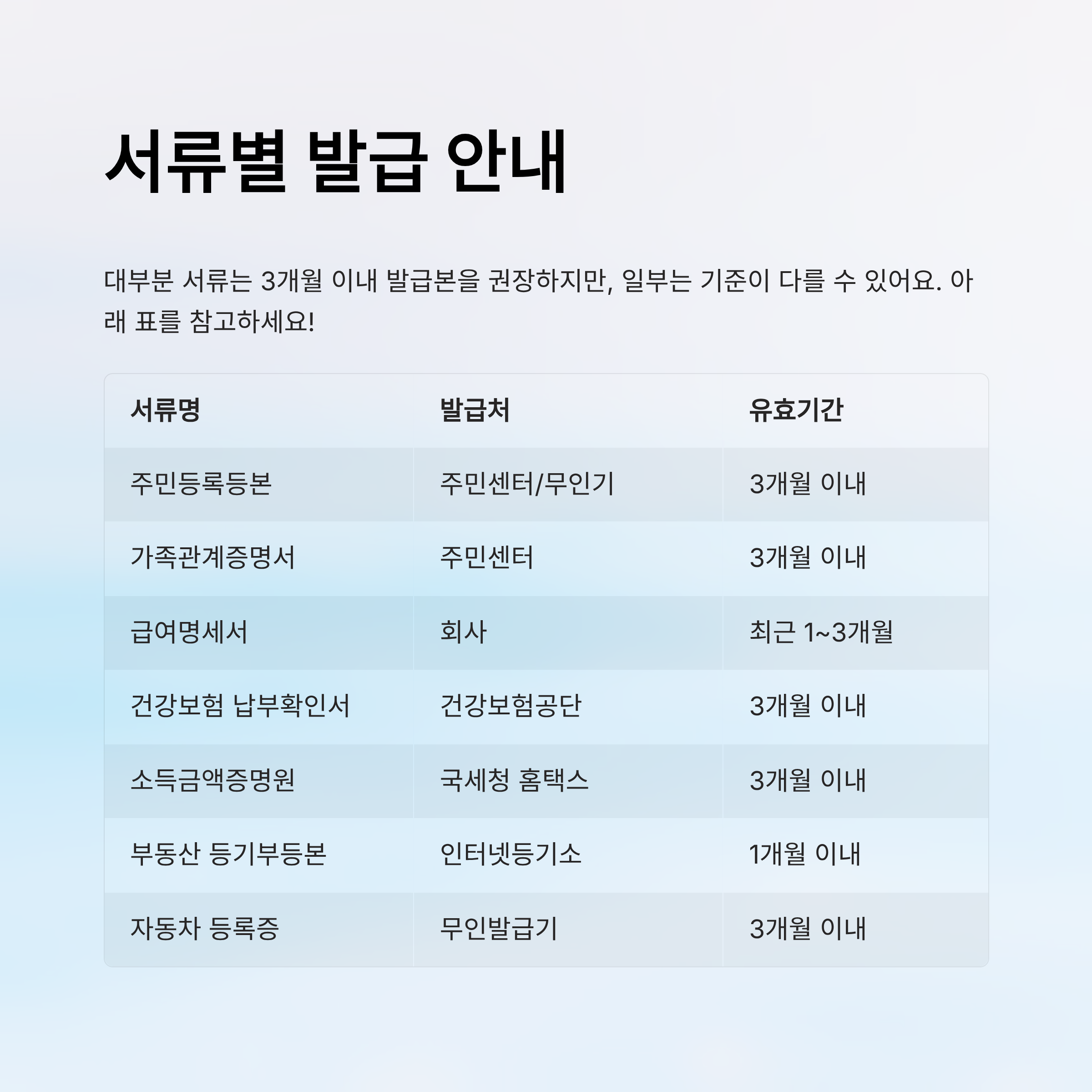 📑 서류별 발급기관 & 유효기간 정리표