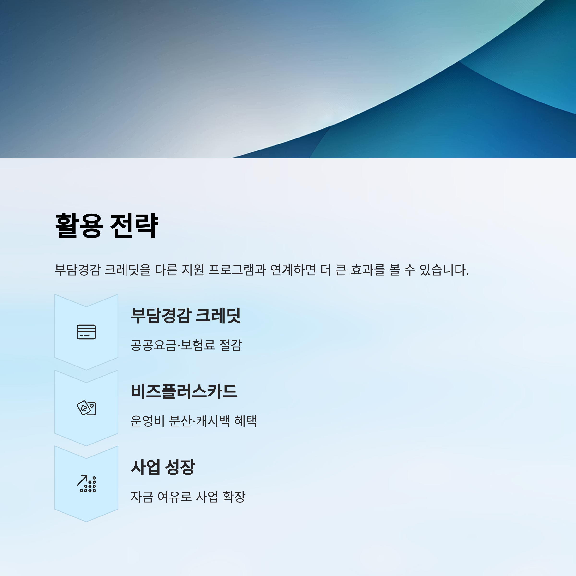 부담경감 크레딧은 단순히 공공요금 절약에서 끝나는 게 아니에요. 이걸 잘 활용하면 다른 정책자금이나 성장 지원 프로그램에 연계할 수 있는 기회로 확장돼요. 특히 정부의 온누리상품권, 비즈플러스카드 같은 프로그램과도 연결되기 때문에 시너지 효과를 기대할 수 있어요.