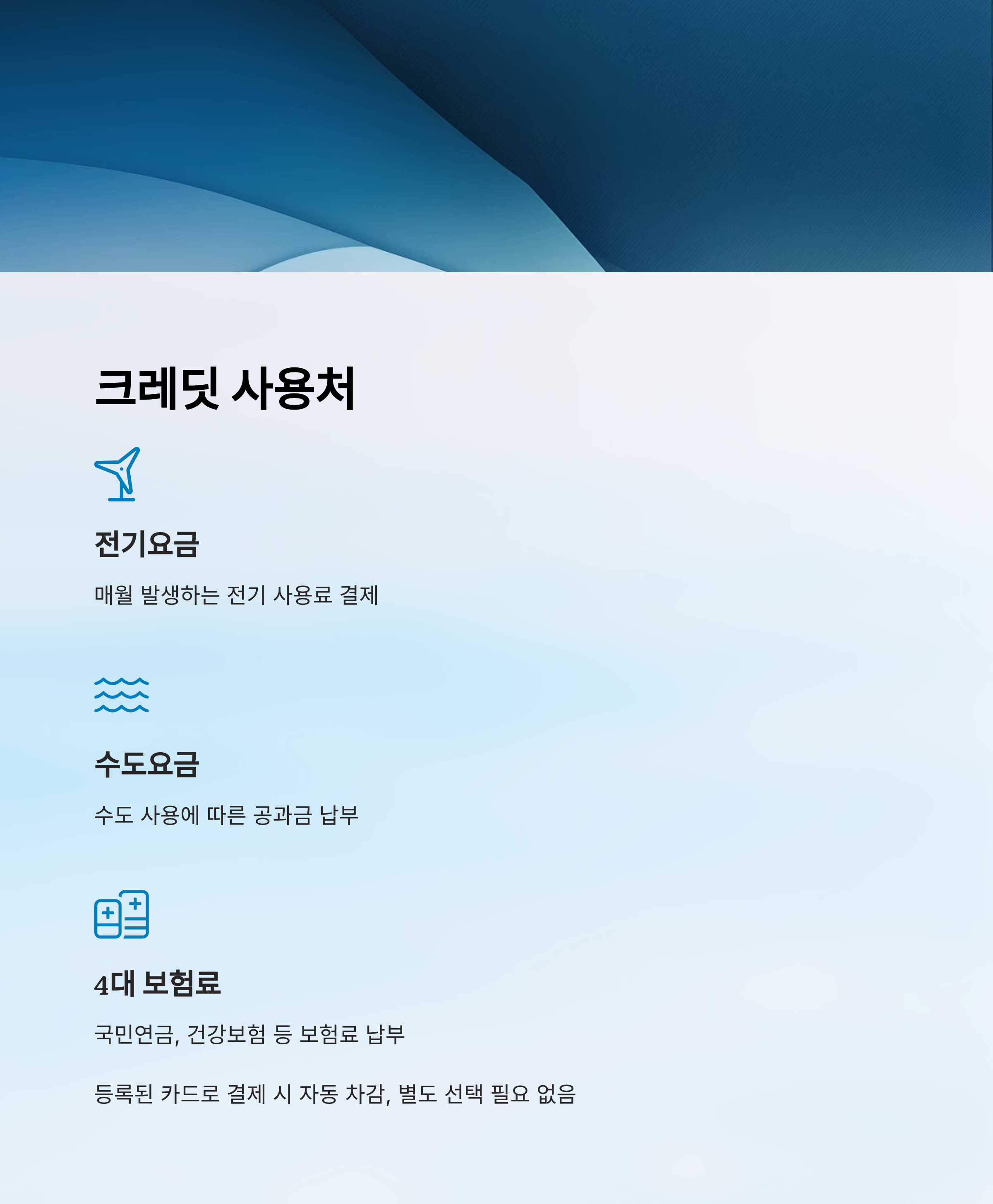 A5. 신청 시 선택한 카드사에 자동으로 연동돼서, 공공요금이나 보험료 결제 시 자동 차감돼요.