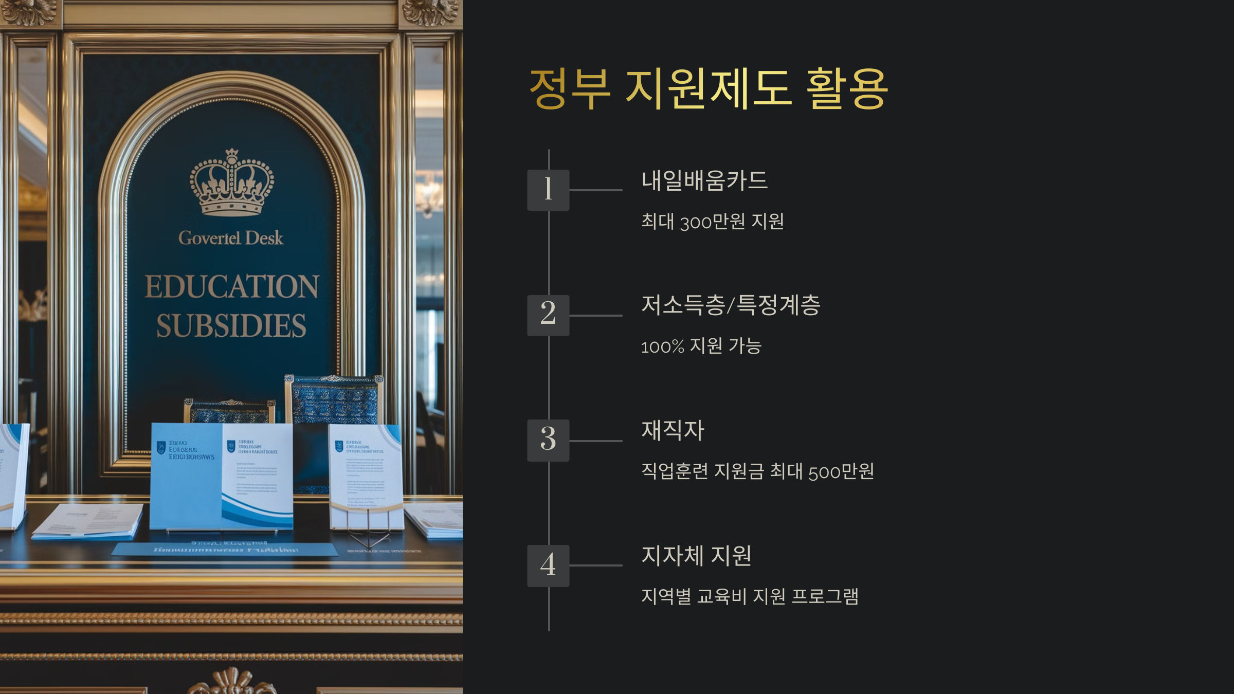 ✔ **내일배움카드 활용 (고용노동부 지원)** ✔ **지자체 교육비 지원 프로그램 확인** ✔ **복지 분야 재직자라면 근로자 직업훈련 지원금 활용** ✔ **장학금 제도 운영하는 학점은행제 기관 선택**