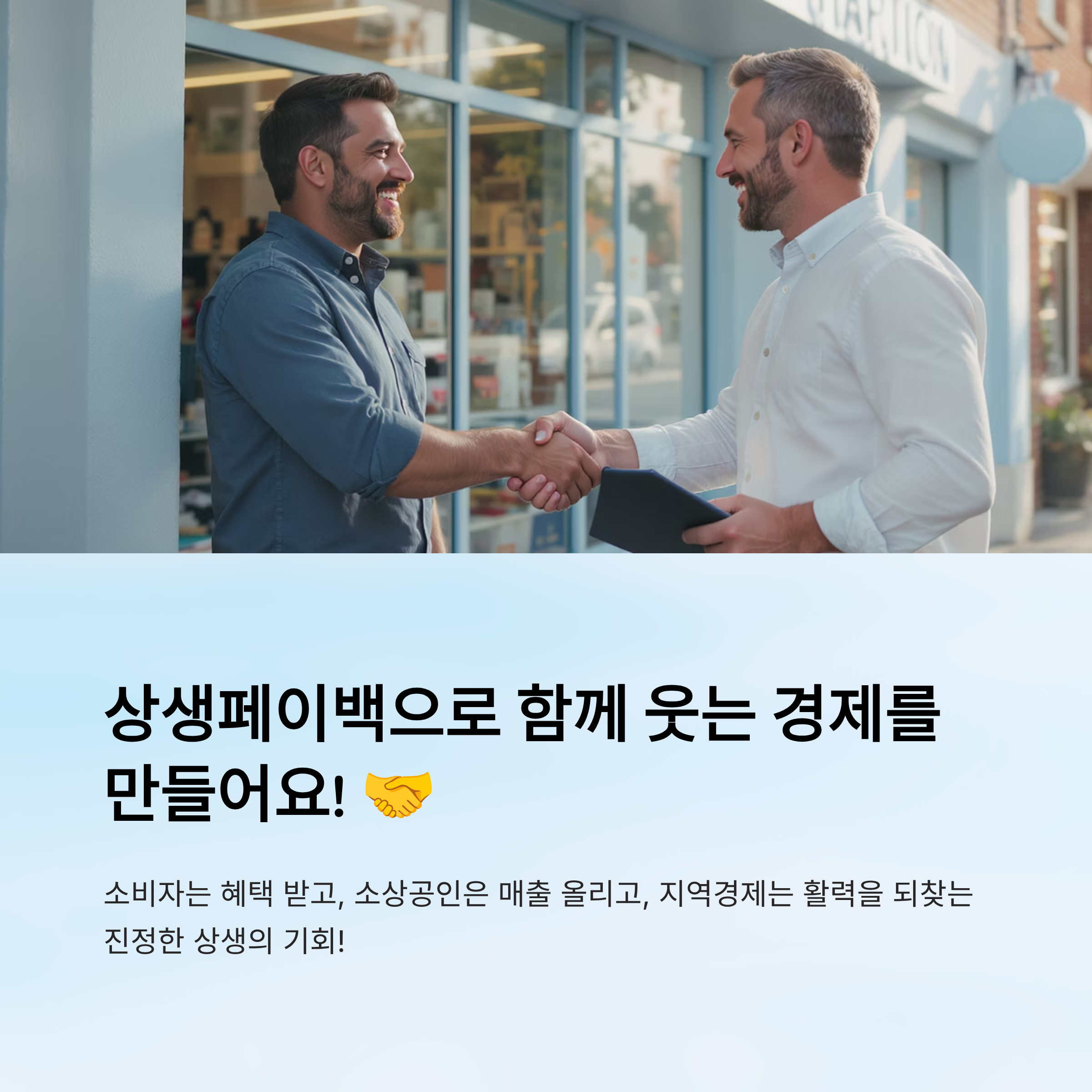 이 표를 보면 명확하듯이, 상생페이백은 ‘내 동네, 내 주변 상권’에서 소비할수록 혜택이 돌아오도록 설계돼 있어요. 따라서 소비자도 실질적 이익을 얻고, 소상공인도 매출을 회복할 수 있는 진정한 상생 구조가 완성되는 거죠. 🤝