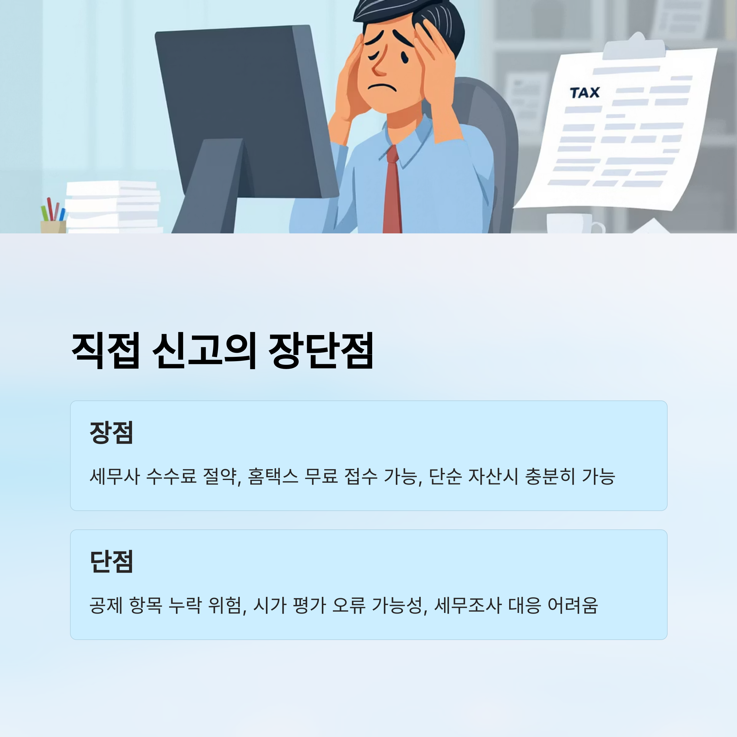 ⚖ 직접 신고 vs 세무대리 리스크 비교