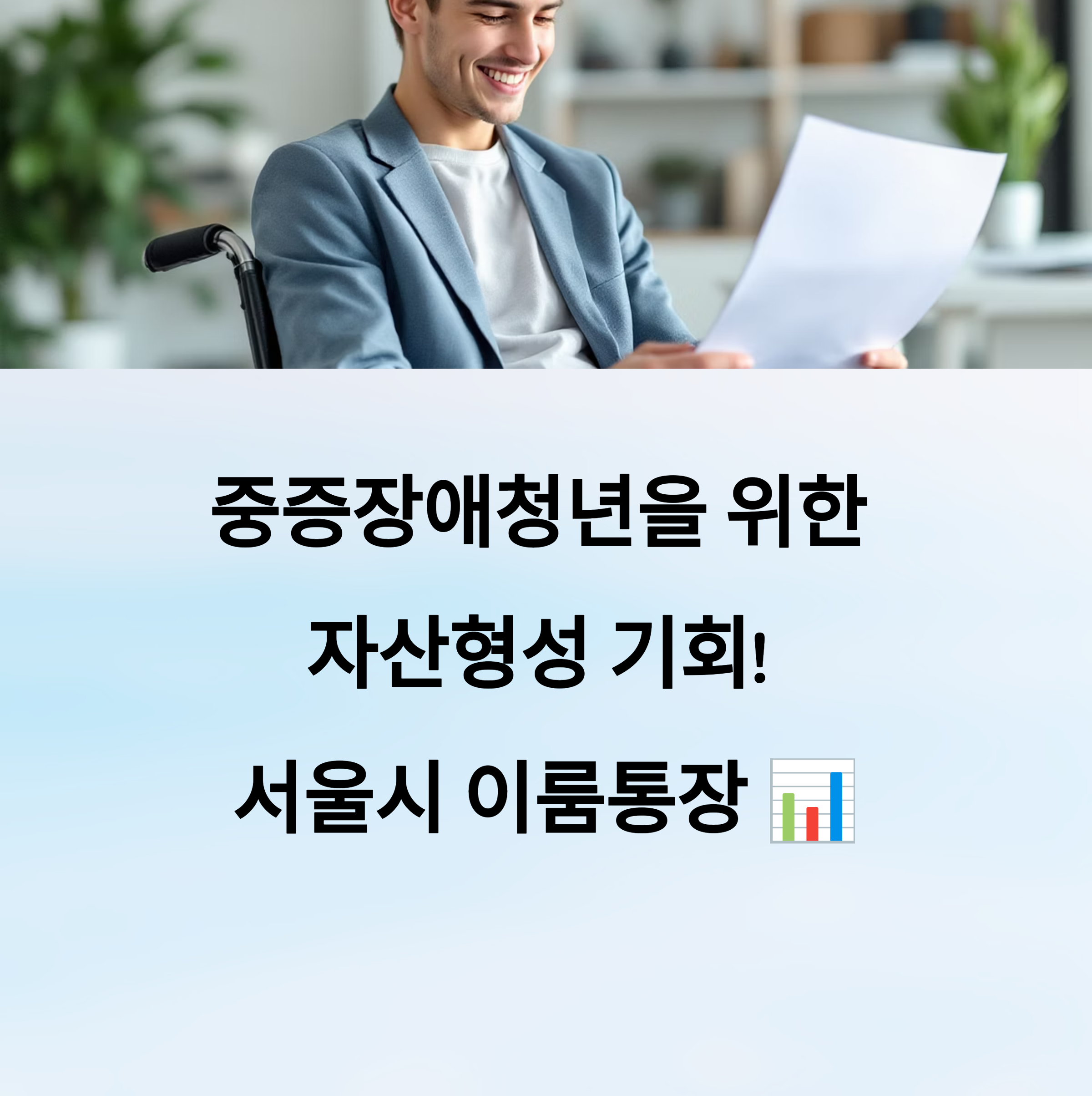서울시는 중증장애청년이 경제적 자립을 이룰 수 있도록 ‘이룸통장’ 사업을 운영하고 있어요. 이 통장은 일자리를 갖기 어려운 장애청년들이 미래를 준비할 수 있게 자산을 형성하도록 돕는 제도랍니다.