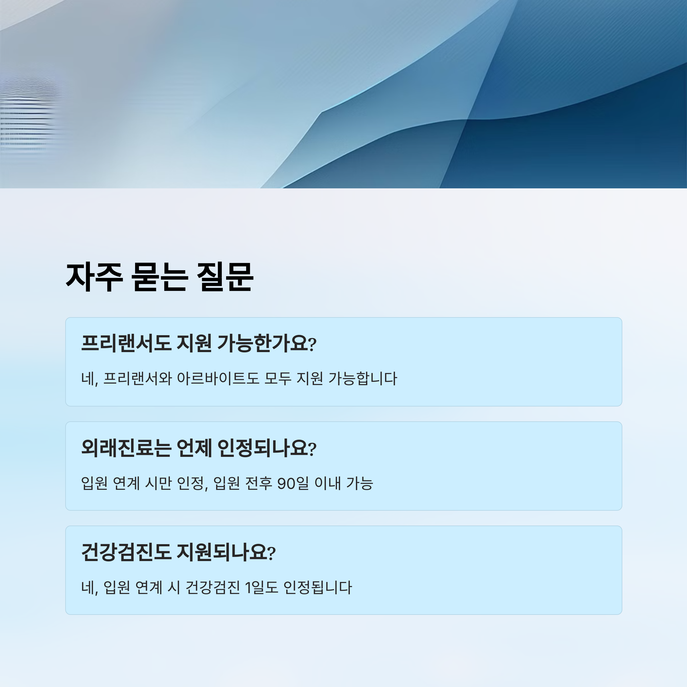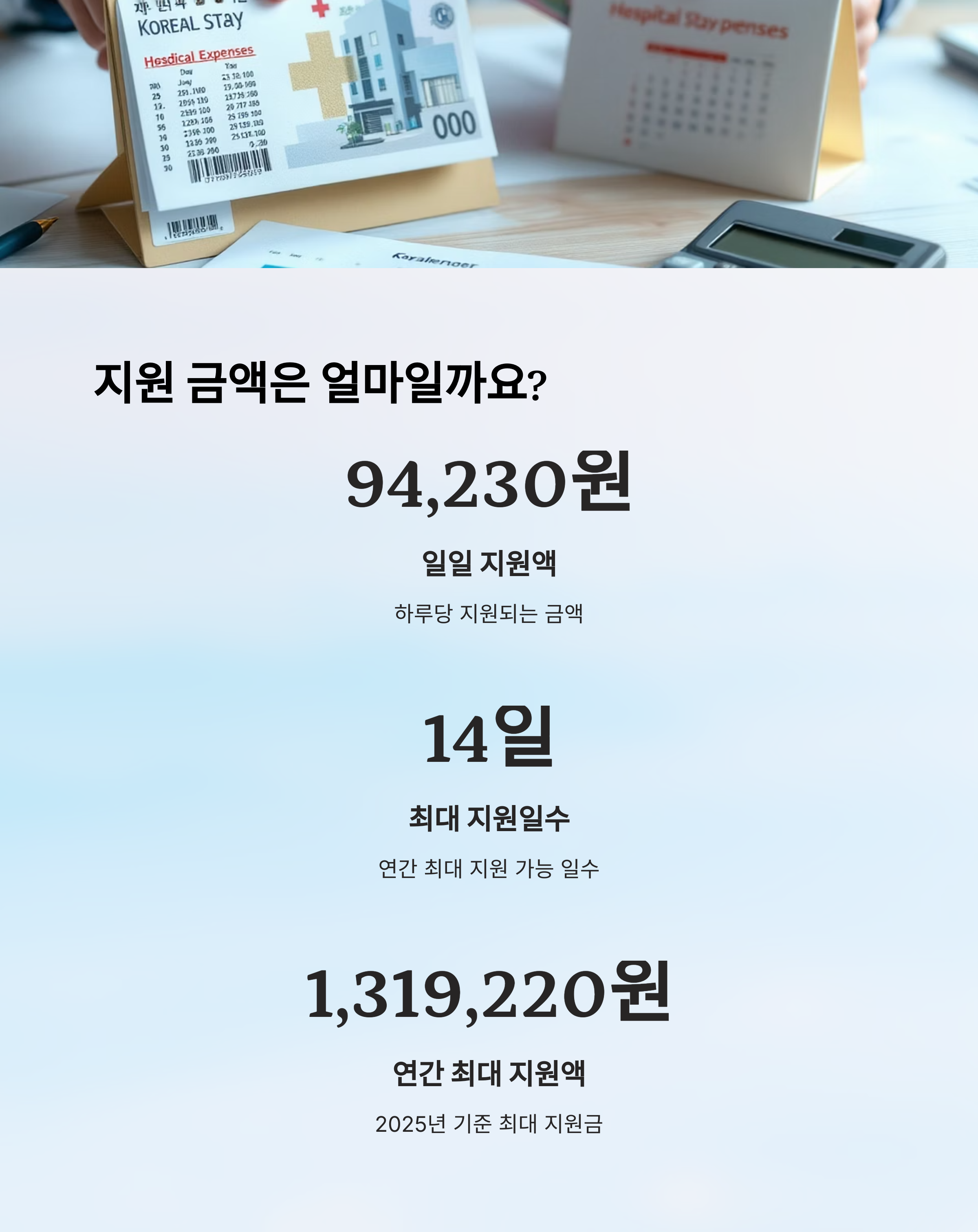 | 지원기간 | 최대 14일 (입원 13일 + 외래 3일 + 검진 1일 포함) |