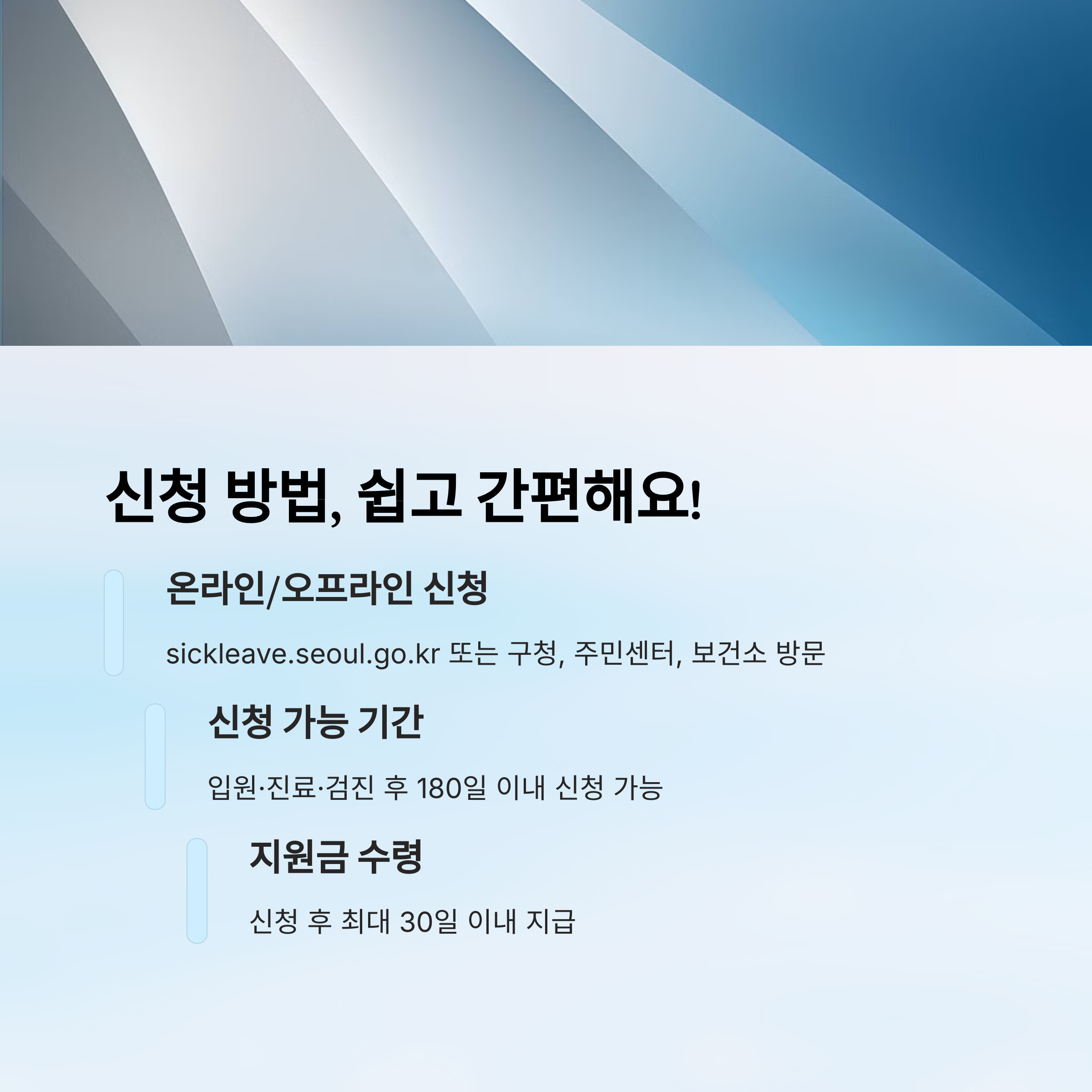 온라인으로 ‘서울형 입원생활비 지원’ 누리집에서 신청할 수 있고요, 주민센터나 보건소를 직접 방문해서도 신청 가능해요.