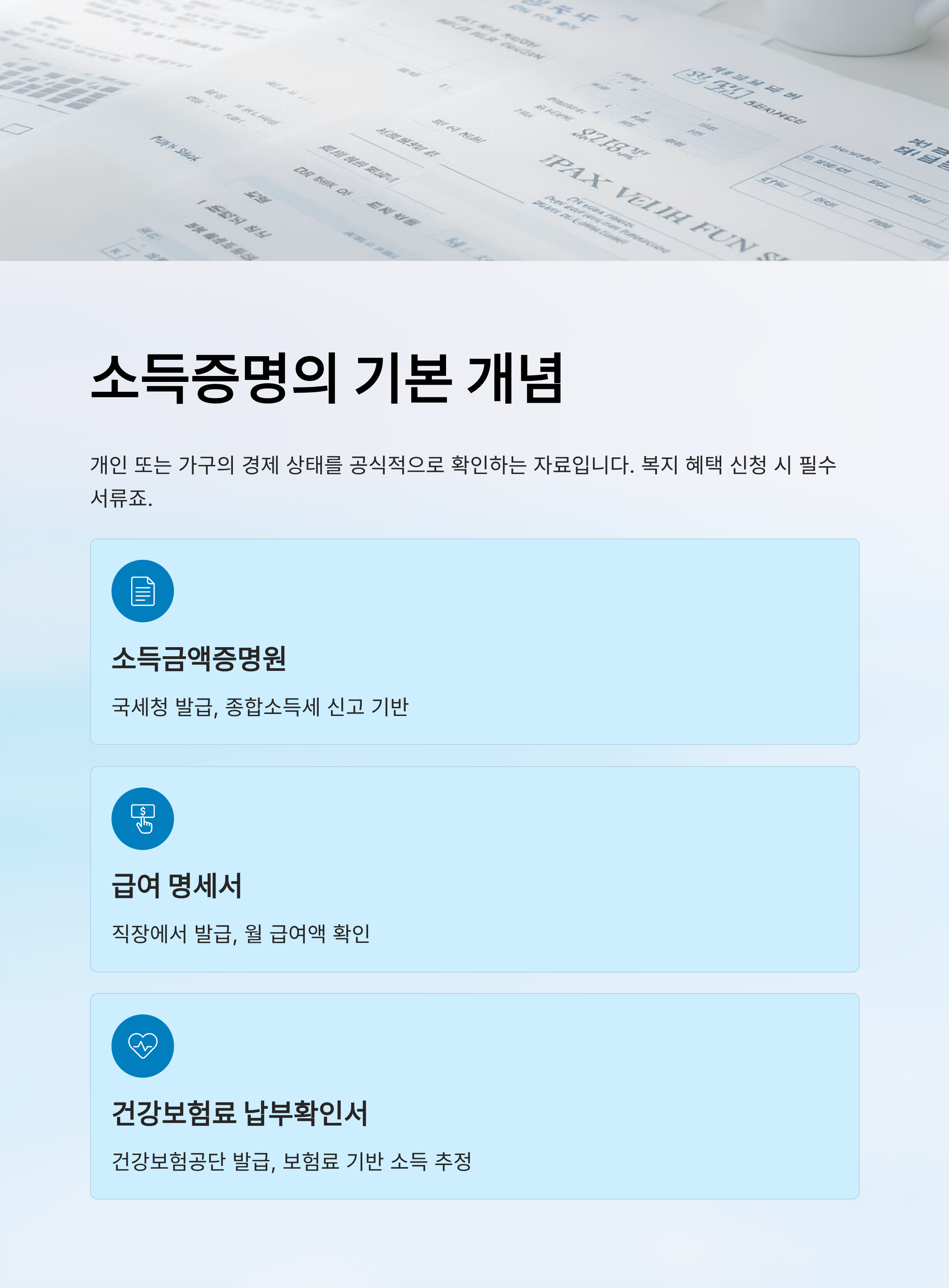 정부나 지자체의 복지 혜택은 누구에게나 평등하게 주어지는 것 같지만, 실제로는 일정 소득기준이나 자산기준에 따라 제한이 생기게 돼요. 특히 **소득증명**은 이런 제한을 판단하는 핵심 자료로 쓰이는데요. 여러 혜택을 한 번에 신청하는 경우, 소득증명서를 통해 **중복 수혜 가능 여부**가 명확히 갈리게 된답니다.