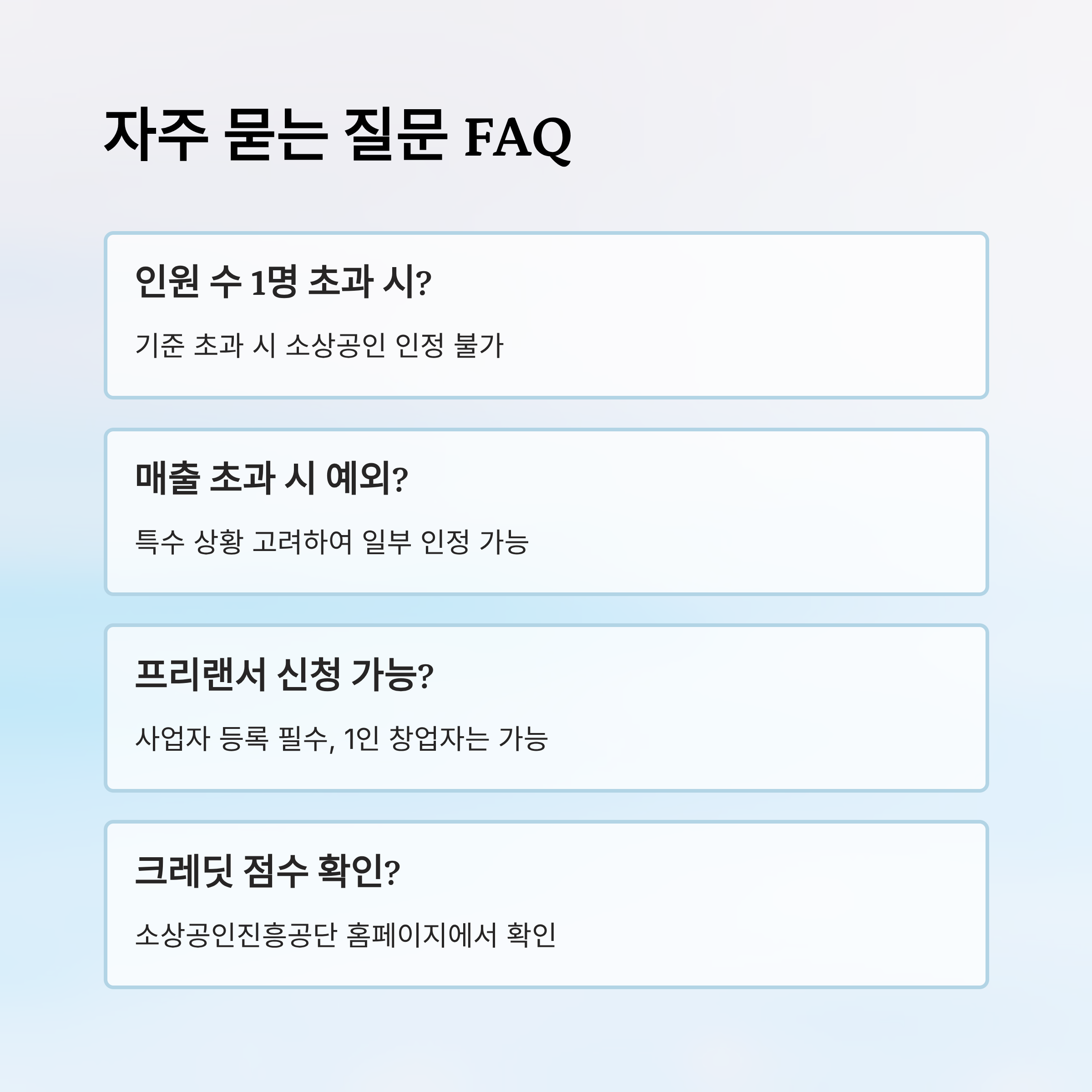 A1. 네, 상시근로자 수 기준을 초과하면 소상공인으로 인정받기 어려워요. 인원 수가 기준을 넘는 순간 다른 제도로 분류될 수 있어요.