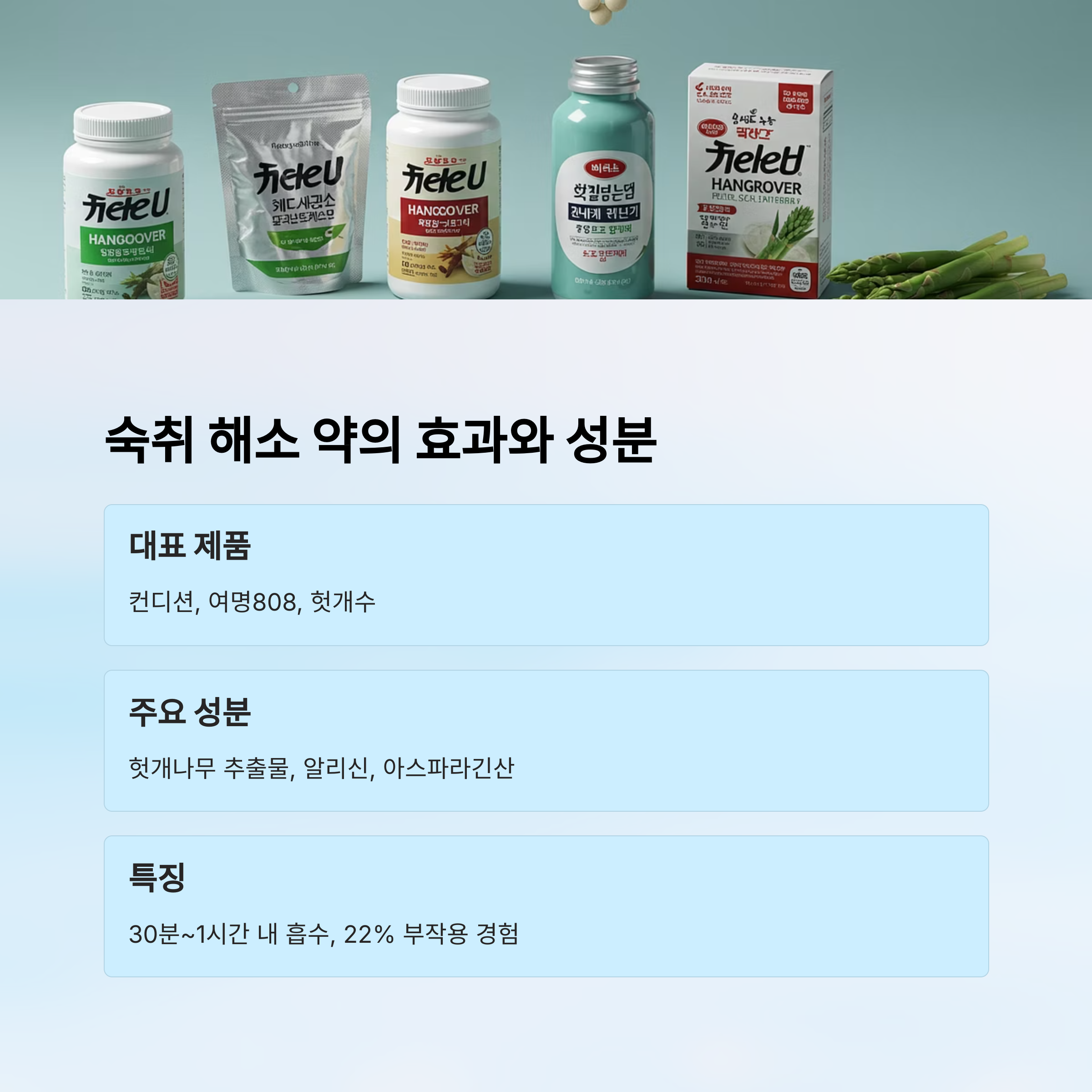 숙취 해소 약의 핵심은 아세트알데히드 분해를 돕는 성분과 간 보호 성분이에요. 대표적으로 밀크씨슬(실리마린), 헛개나무 추출물, 아스파라긴산, 글루타치온 등이 사용돼요. 이런 성분들은 간의 해독 작용을 도와주고, 손상된 세포 회복을 촉진시켜요.