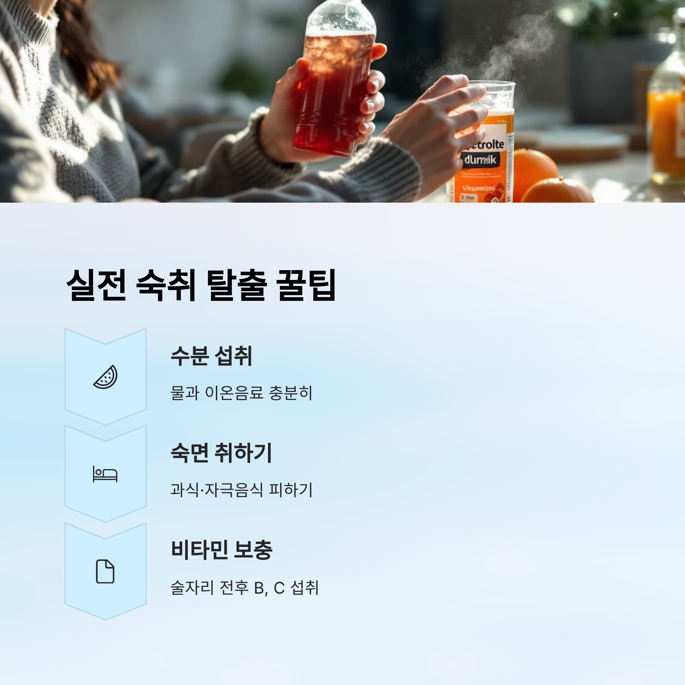 이제 이론은 충분히 알았으니, 바로 쓸 수 있는 실전 꿀팁들을 모아볼게요! 갑작스럽게 술자리에 끌려나갔거나, 친구랑 기분 좋게 한 잔 하다가 너무 달렸을 때도 이 팁들을 기억하면 회복 속도를 확 높일 수 있어요 😎