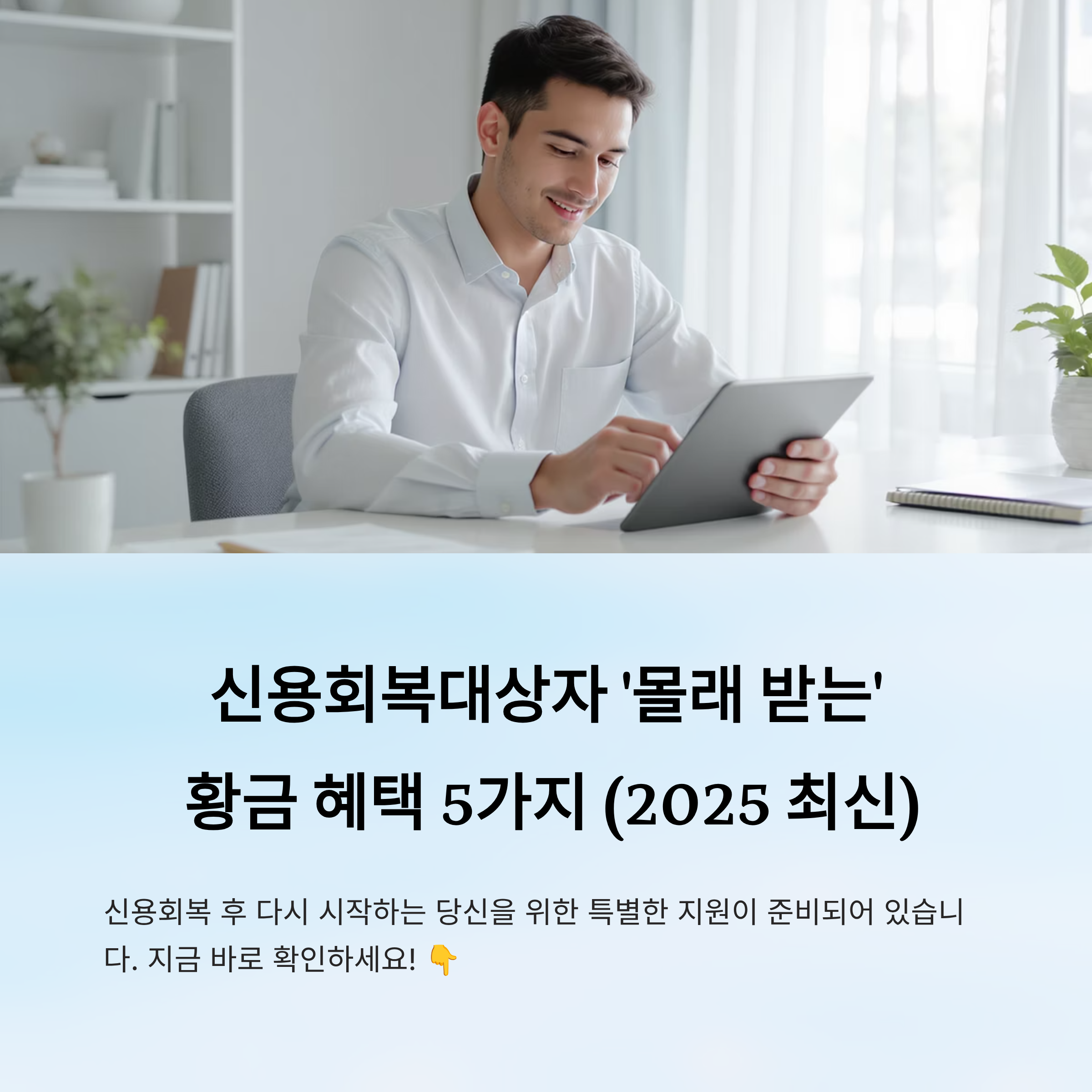 오늘은 제가 생각했을 때 가장 유용하고 꼭 알아야 할 5가지 황금 혜택을 소개할게요. 잘 챙기면 신용 회복은 물론, 주거·대출·교육·심리 상담까지 모두 지원받을 수 있어요! 🔍
