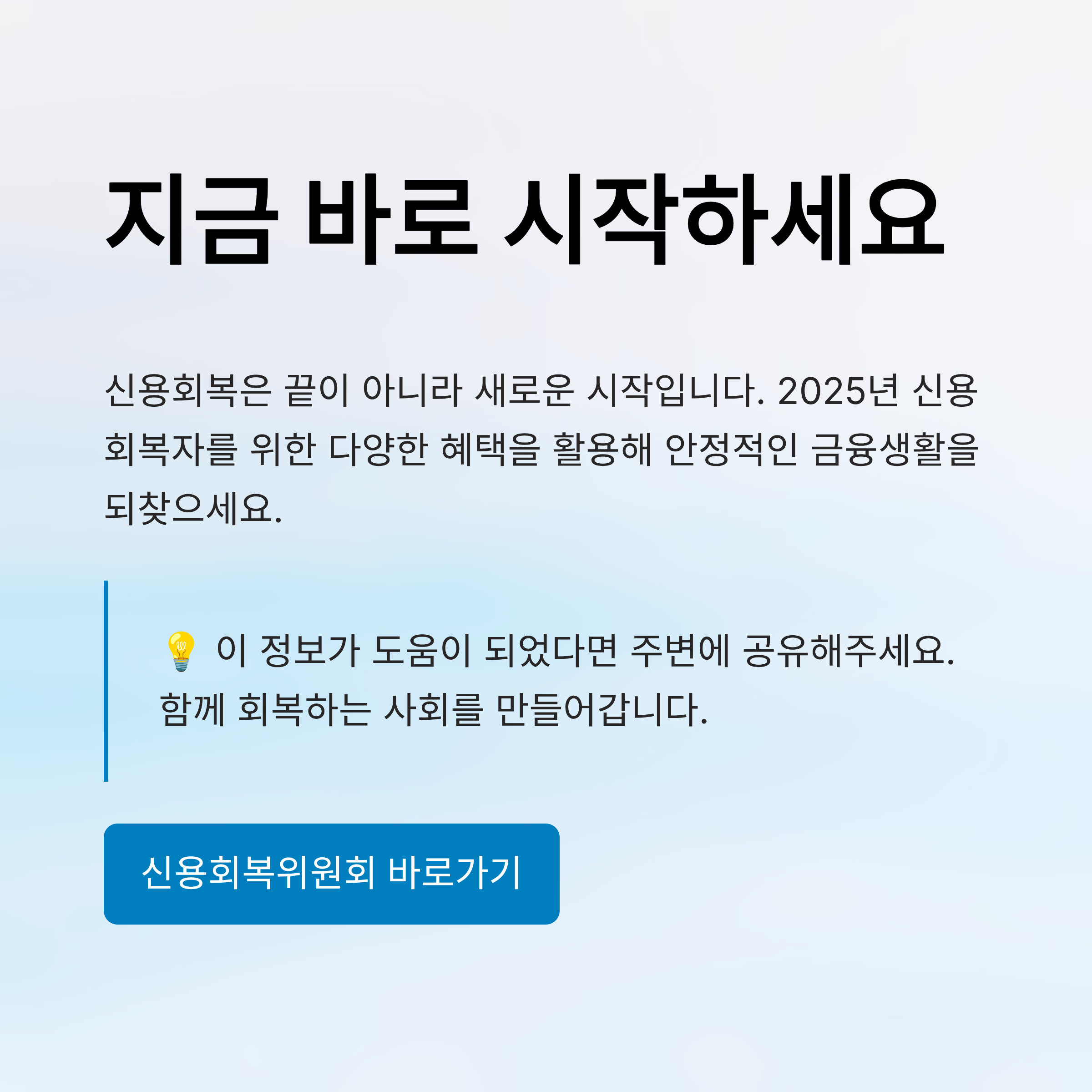 지역별로 맞춤형 지원을 확인하면 신용회복 이후 생활 안정과 금융 복귀를 동시에 달성할 수 있어요. 📌