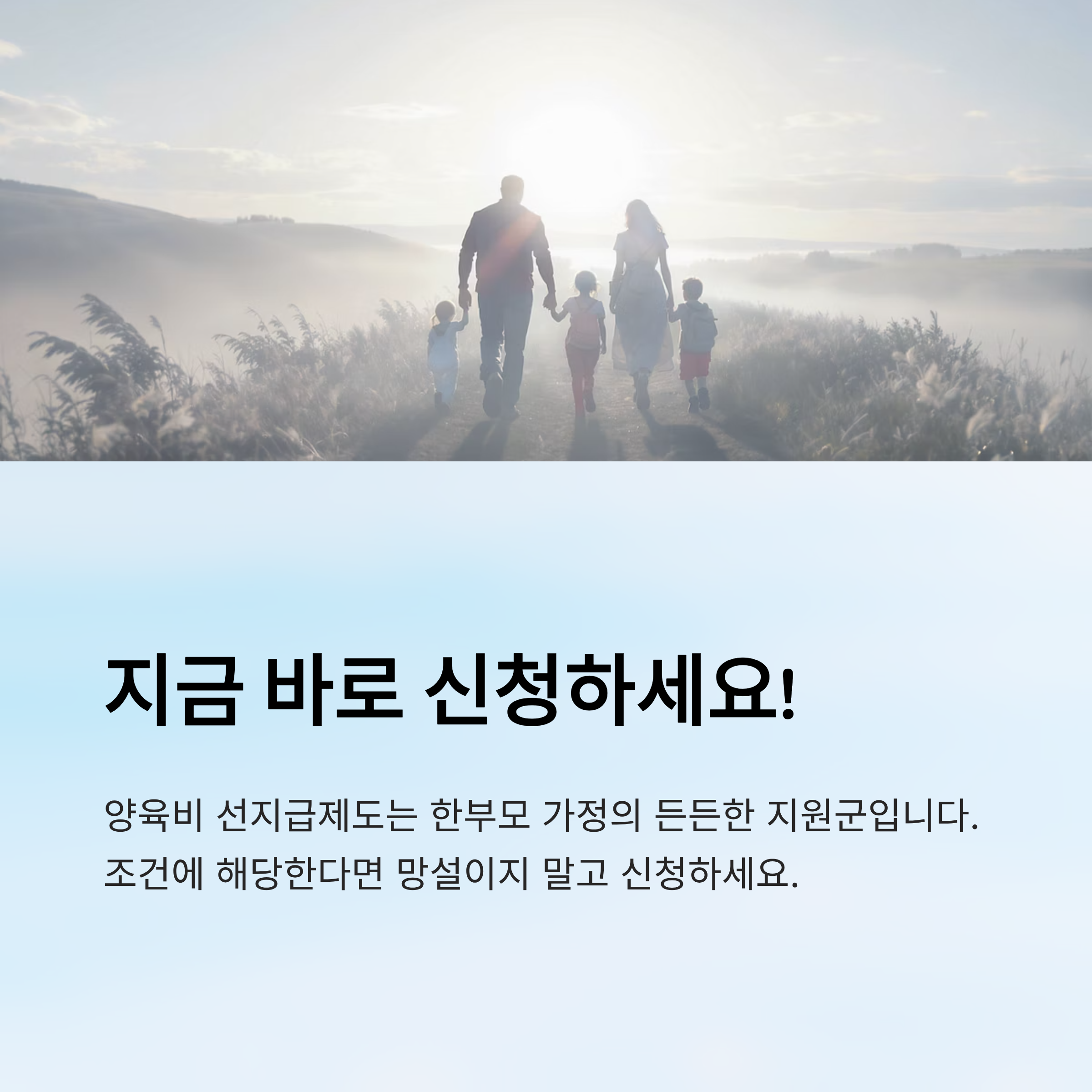 한부모 가정은 사회의 보호가 필요한 가정이에요. 단지 양육비만 받는 게 아니라, 그걸 통해 자녀가 더 나은 미래로 나아갈 수 있다는 점에서 선지급제는 단순한 제도가 아니라 '기회'예요.