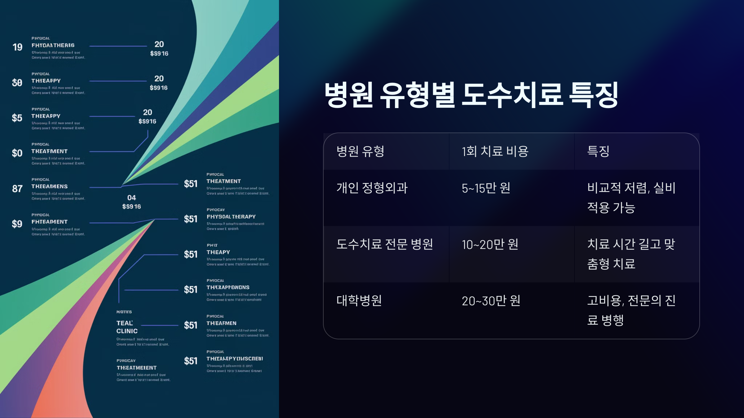 | 병원 유형 | 1회 치료 비용 | 특징 |