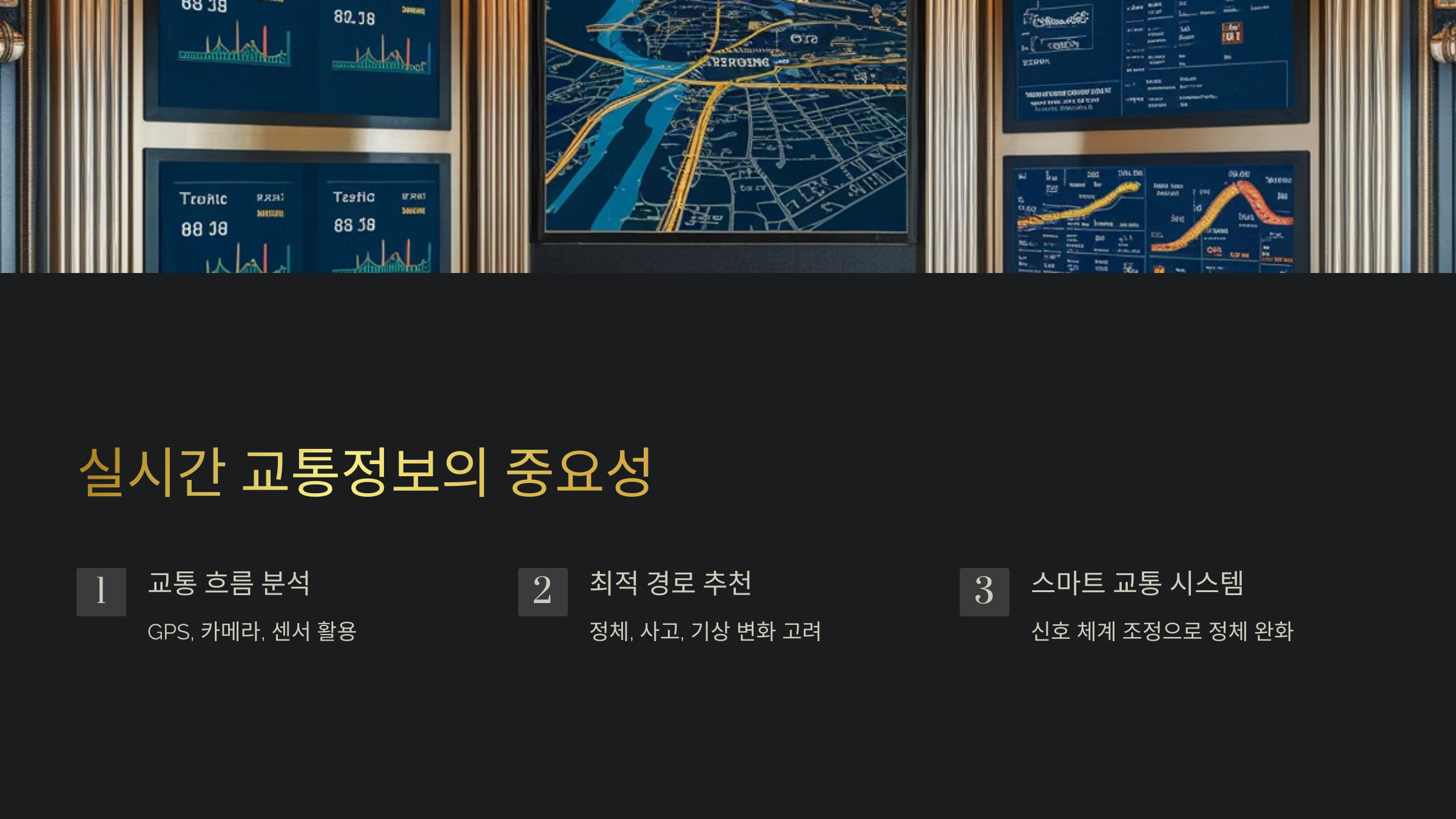 도로 정체, 사고, 기상 변화 등 다양한 요소가 교통 흐름에 영향을 미쳐요. 실시간 교통정보는 이러한 요소들을 분석하고, 최적의 이동 경로를 추천하는 데 중요한 역할을 해요.