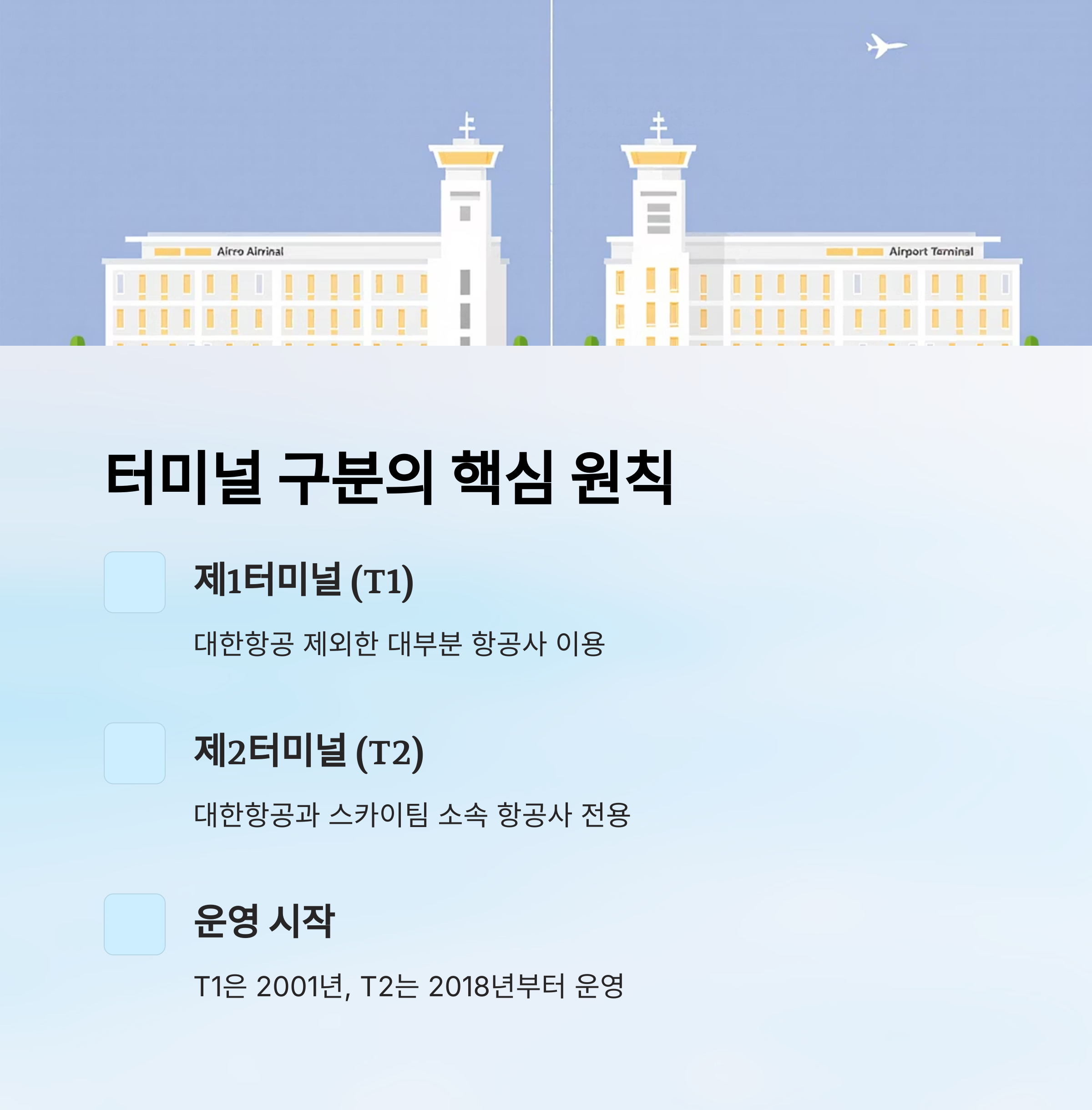✈️ 인천공항에는 **제1터미널과 제2터미널**이 있어요! 하지만 어떤 항공사가 어느 터미널을 이용하는지 헷갈릴 때가 많죠? 😵