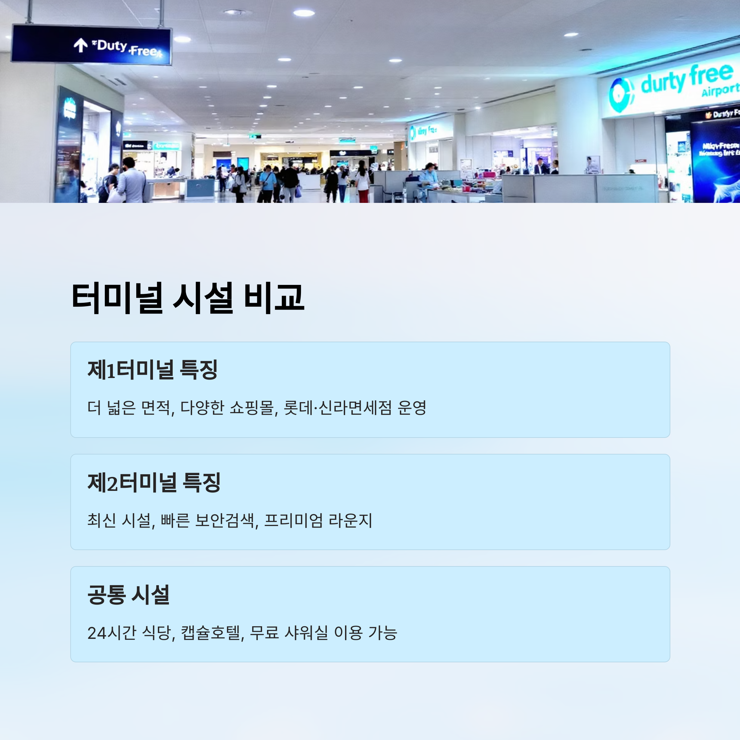 | 터미널 규모 | 더 넓음 (탑승동 포함) | 더 쾌적하고 최신 시설 |