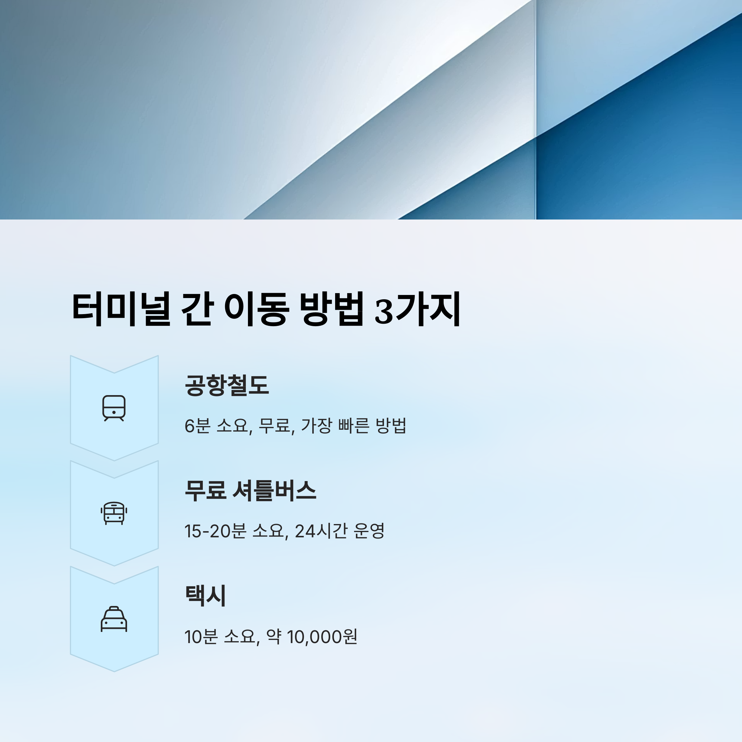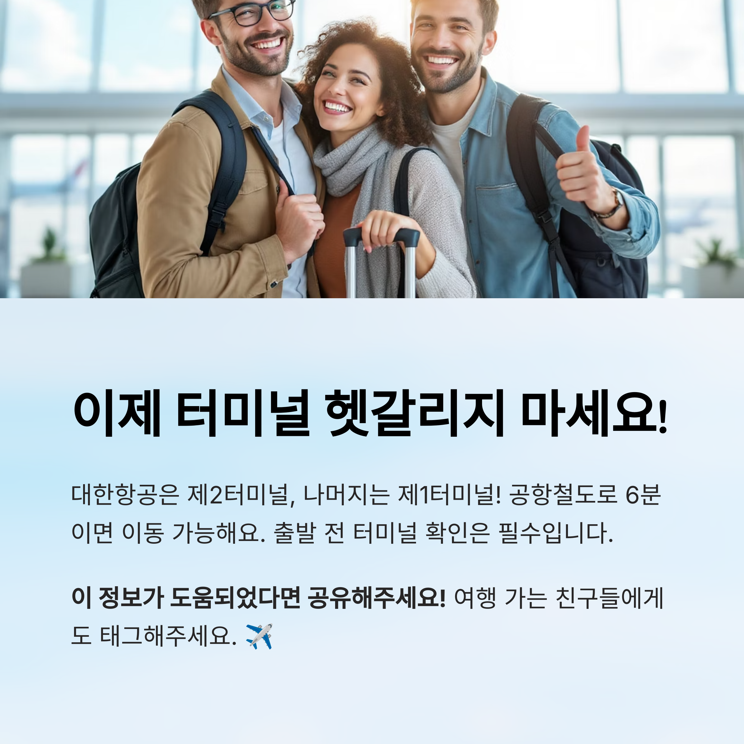 ✅ 인천공항은 터미널마다 시설과 이용 방법이 다르니, **탑승 터미널을 꼭 확인하고 이동 방법도 미리 체크하세요!** ✈️