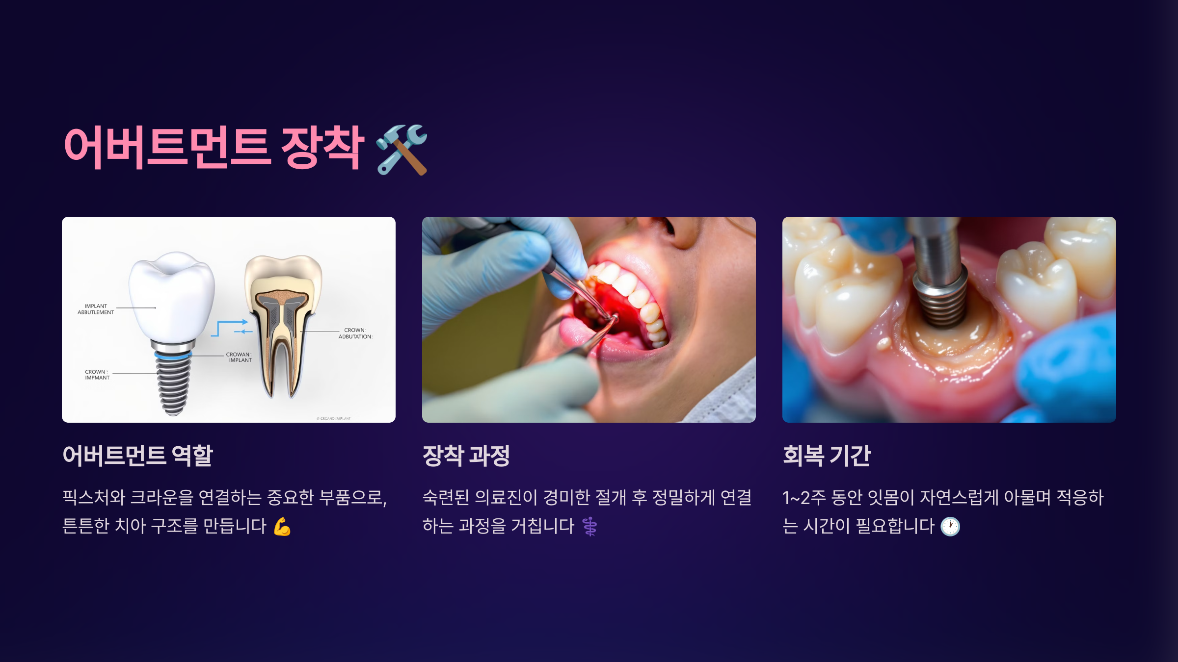 - 어버트먼트를 연결한 뒤 잇몸이 다시 아물 때까지 기다림 (약 1~2주)