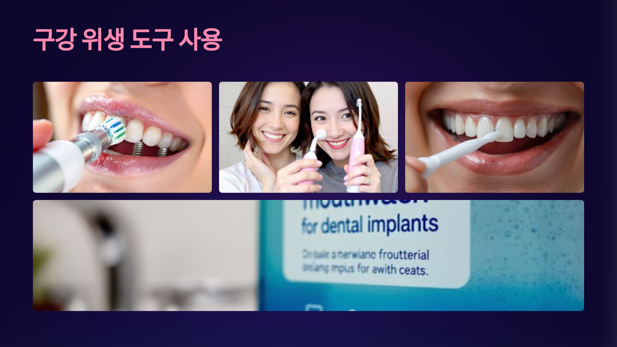 임플란트를 효과적으로 관리하려면 적절한 구강 위생 도구를 사용하는 것이 중요합니다.
