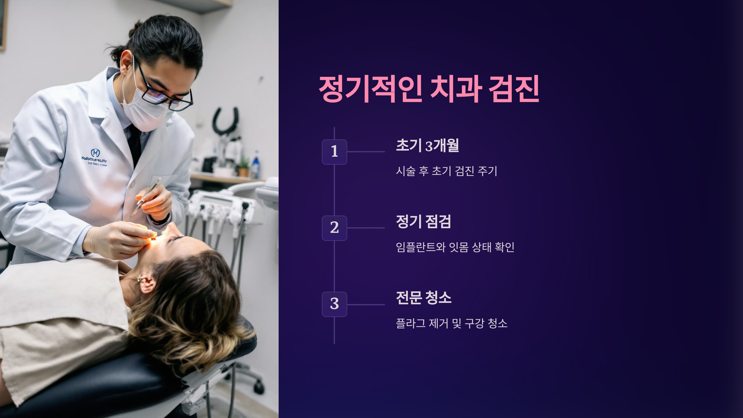 청결 유지, 정기 검진, 흡연 금지가 임플란트 수명을 연장하는 핵심 요소입니다.