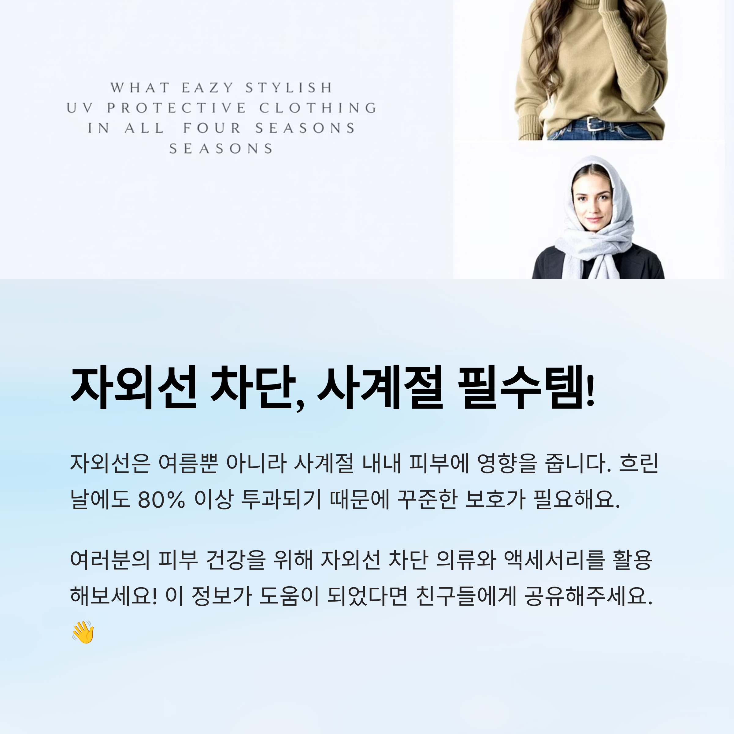 내가 생각했을 때, 자외선 차단 아이템은 여름을 넘어서 사계절 내내 쓰이는 필수템이에요. 특히 피부가 예민하거나 야외 활동이 많은 분들에겐 꼭 필요하답니다.